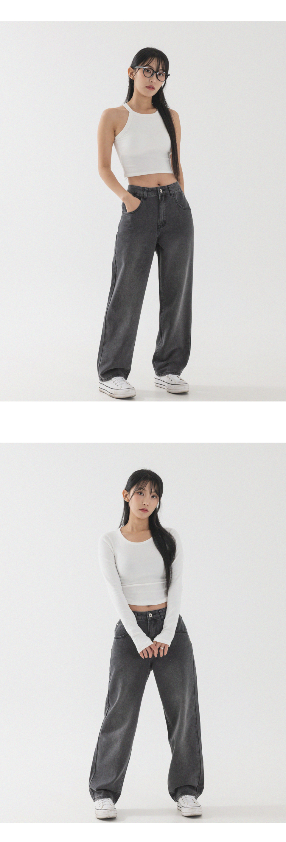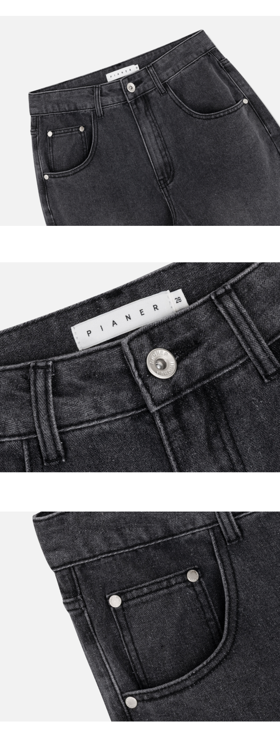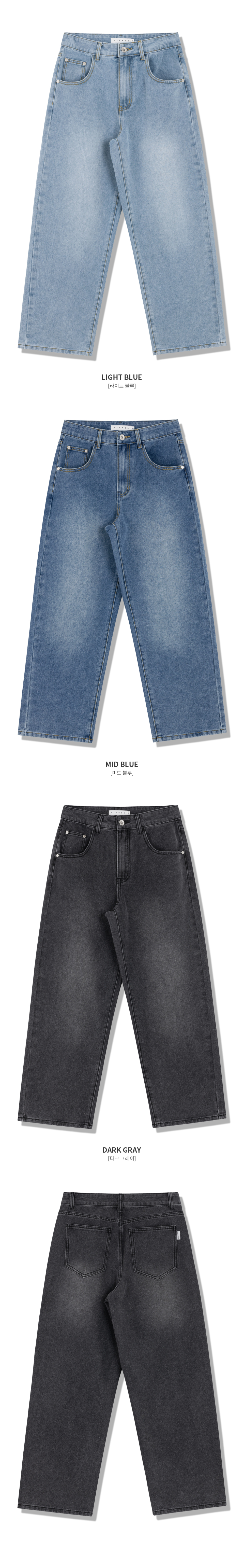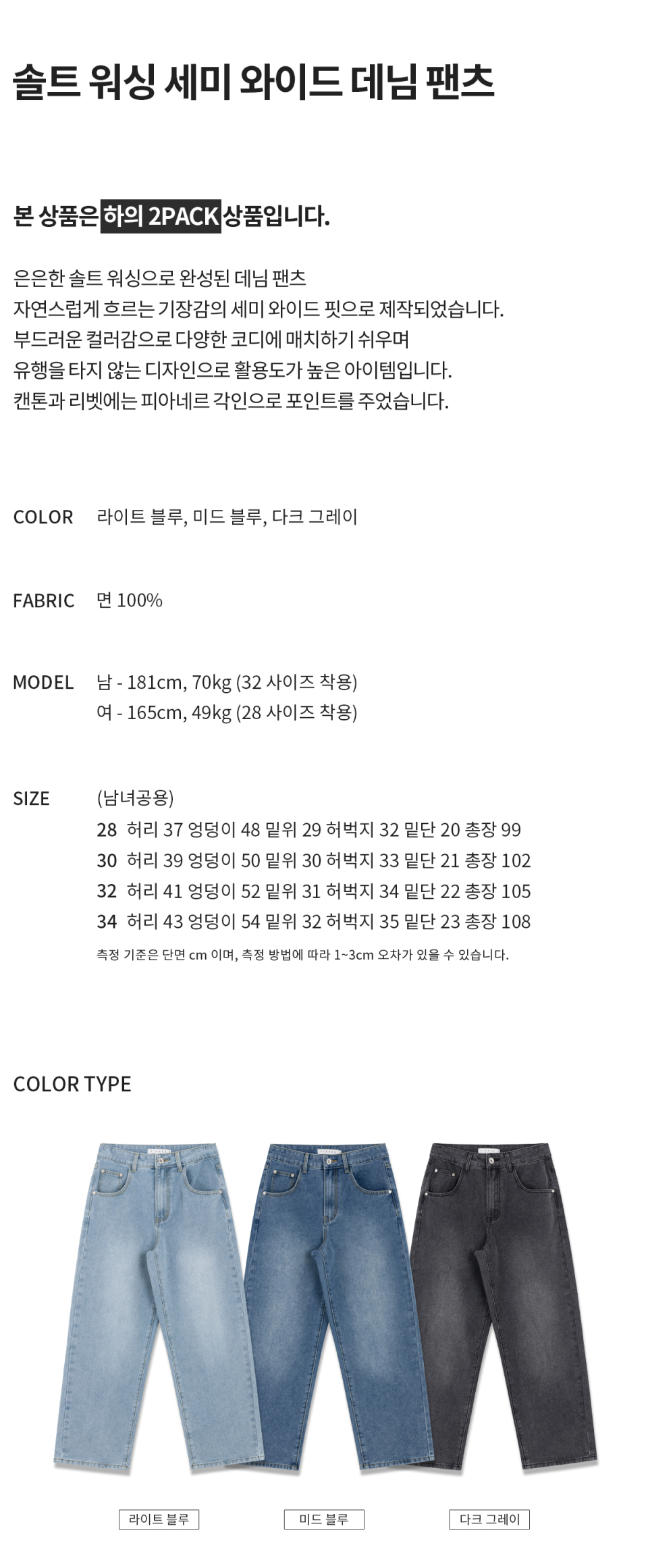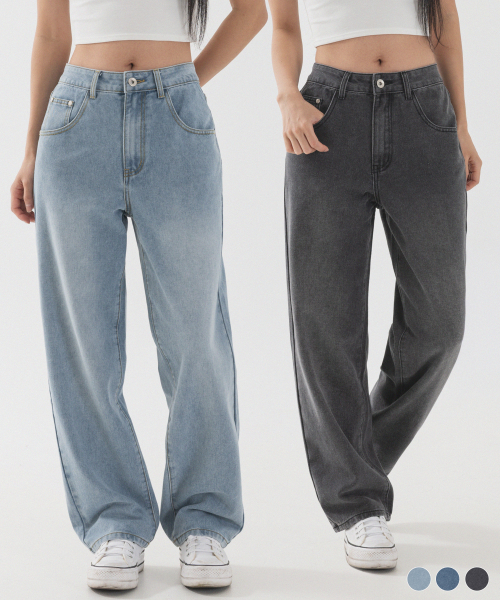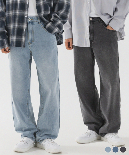 [2 PACK] 솔트 워싱 세미 와이드 데님 팬츠 (3color)
