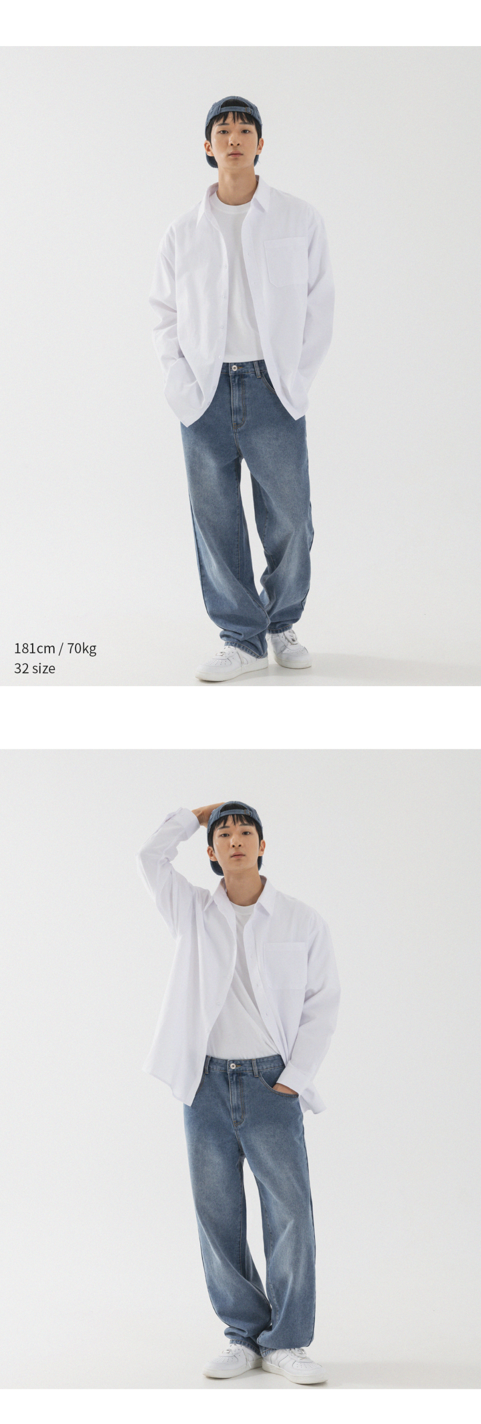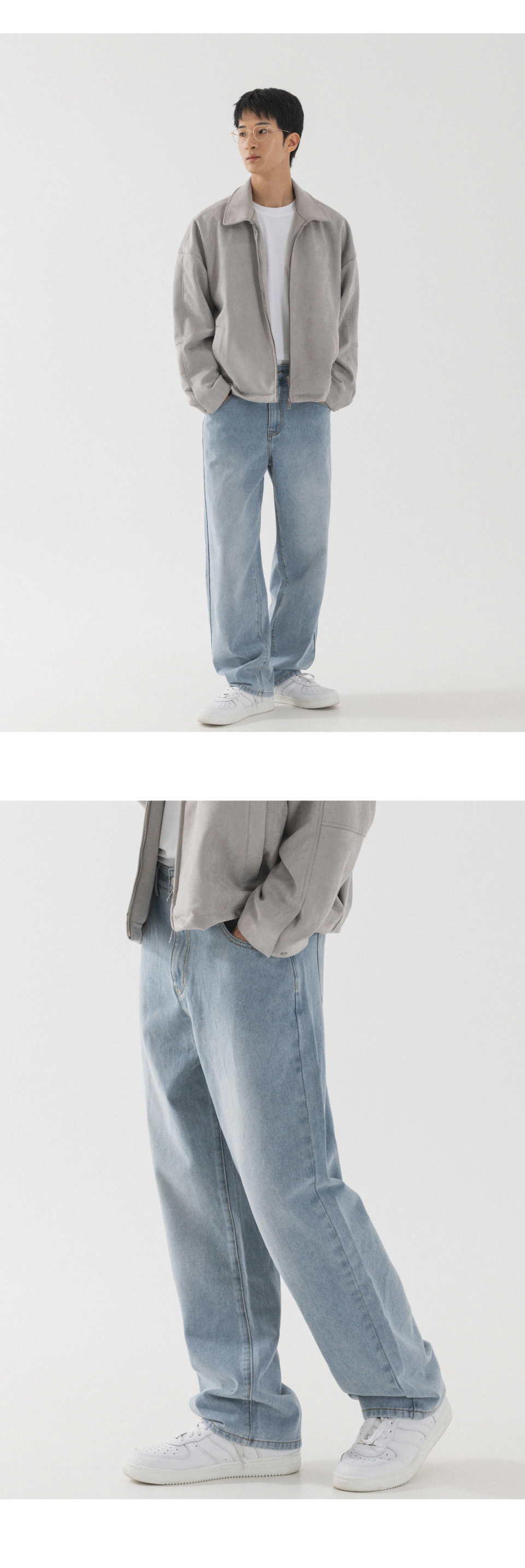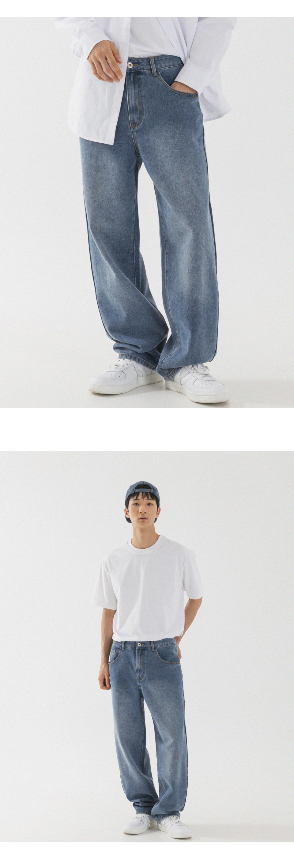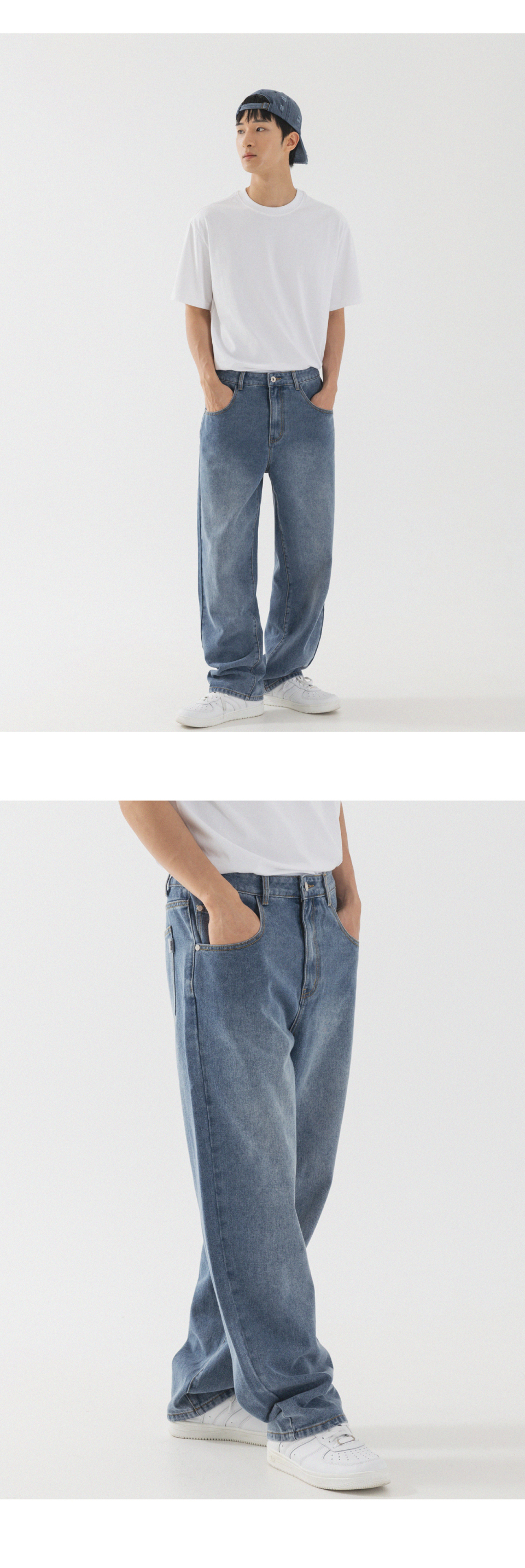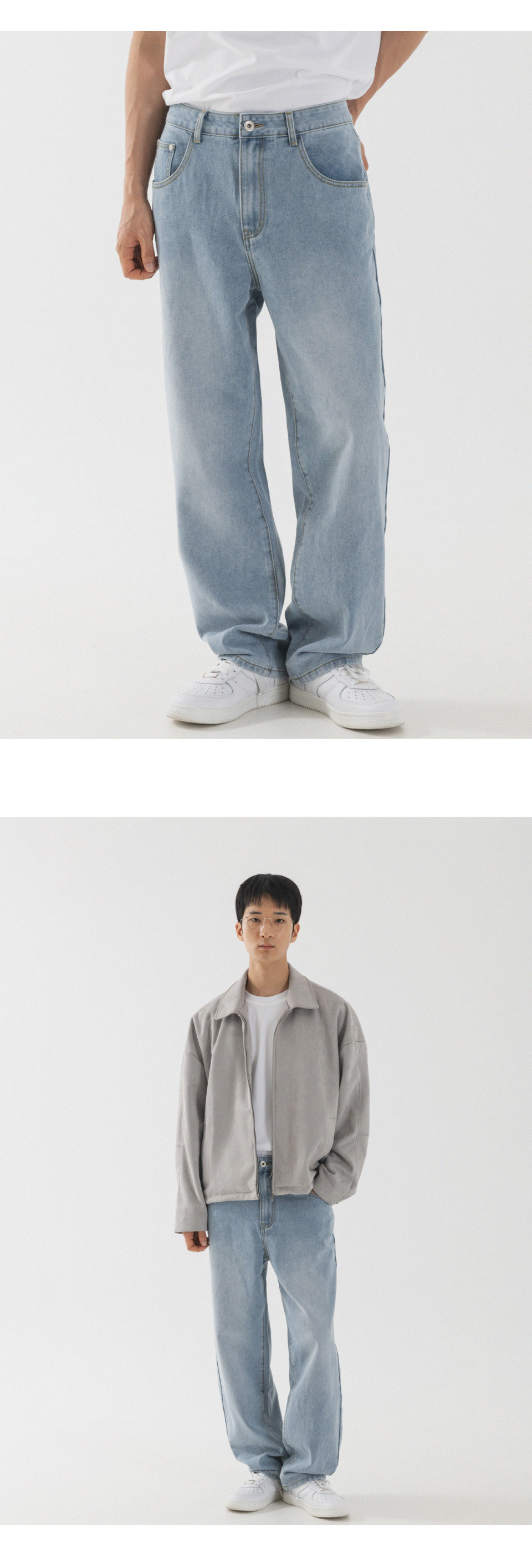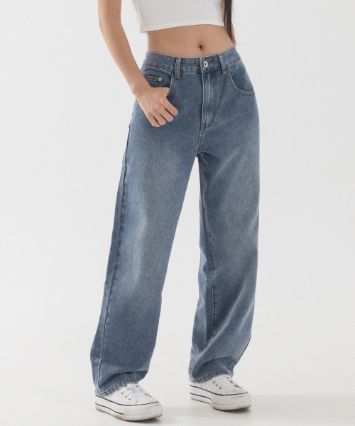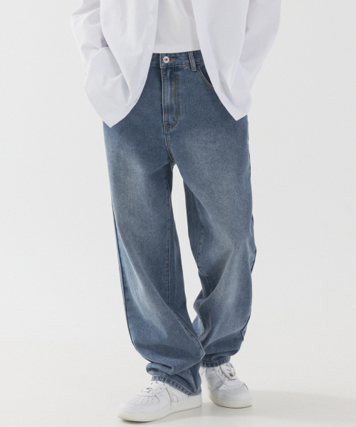 내추럴 워싱 세미 와이드 데님 팬츠 [연청]
