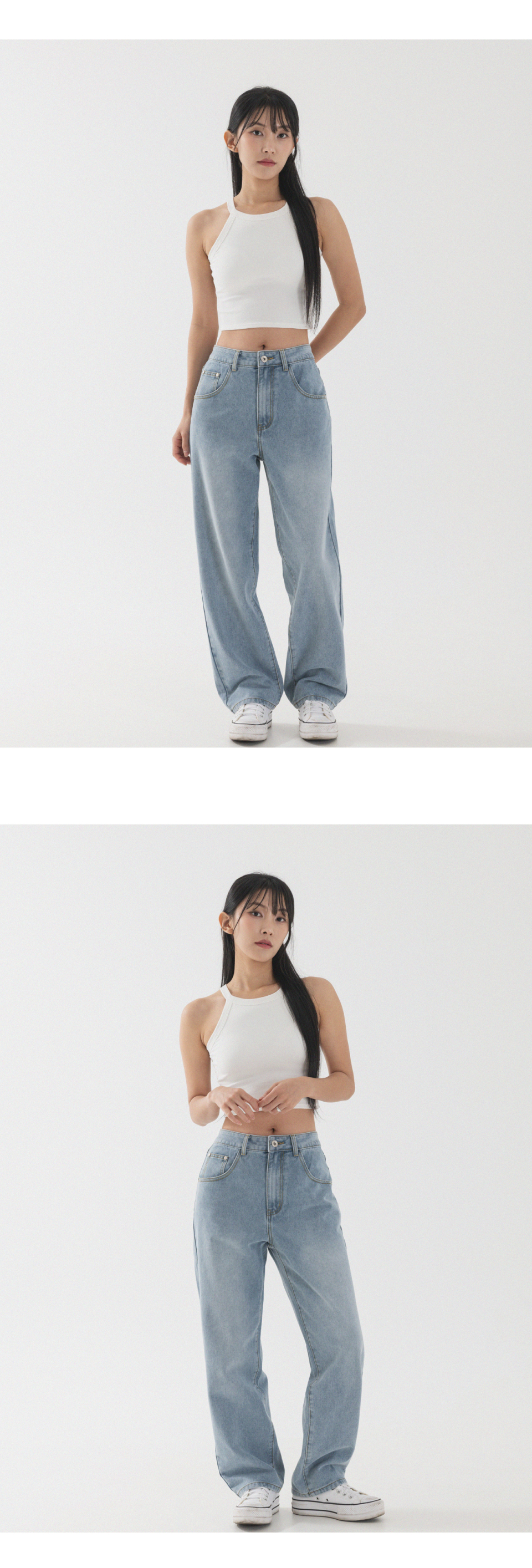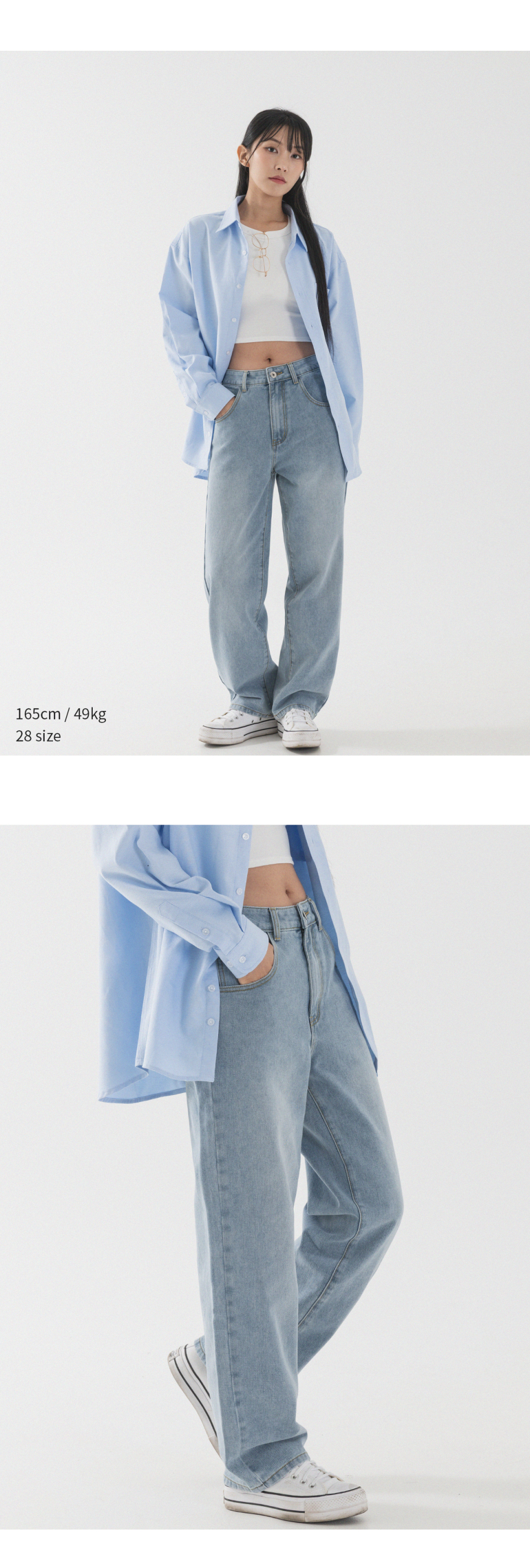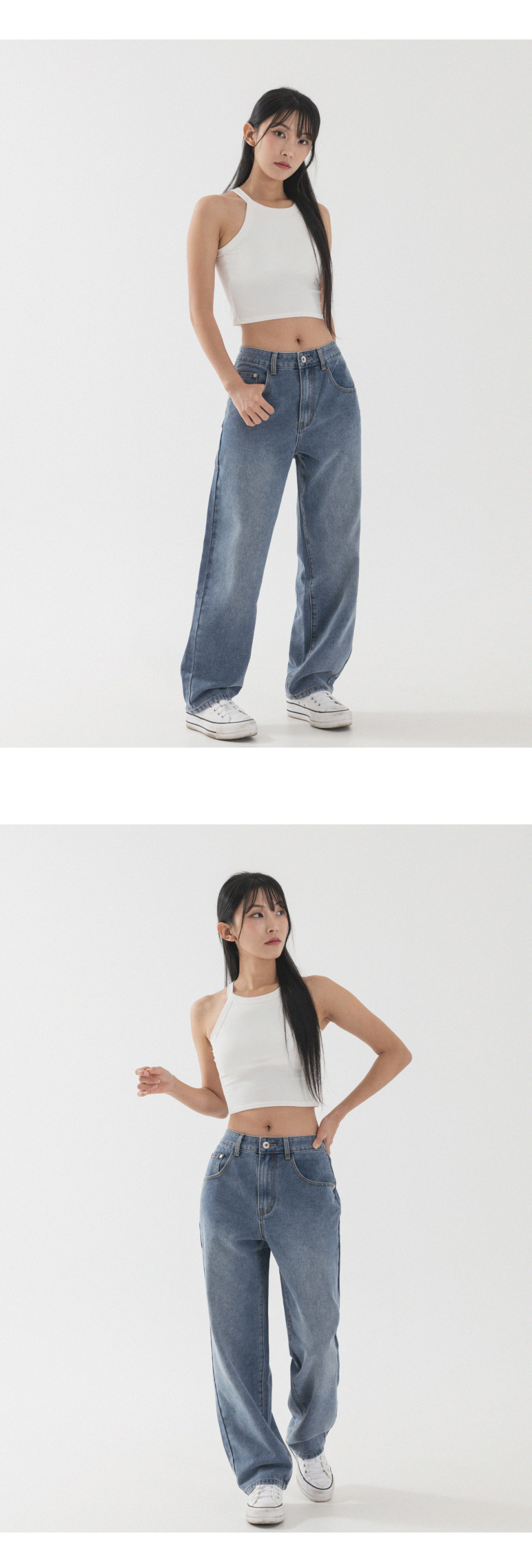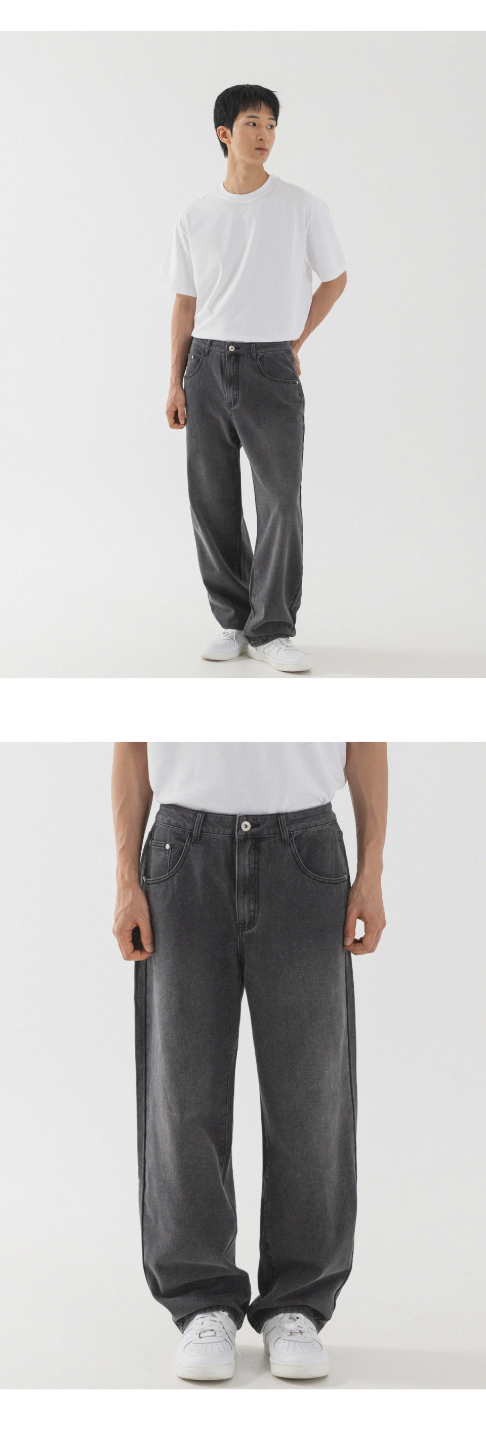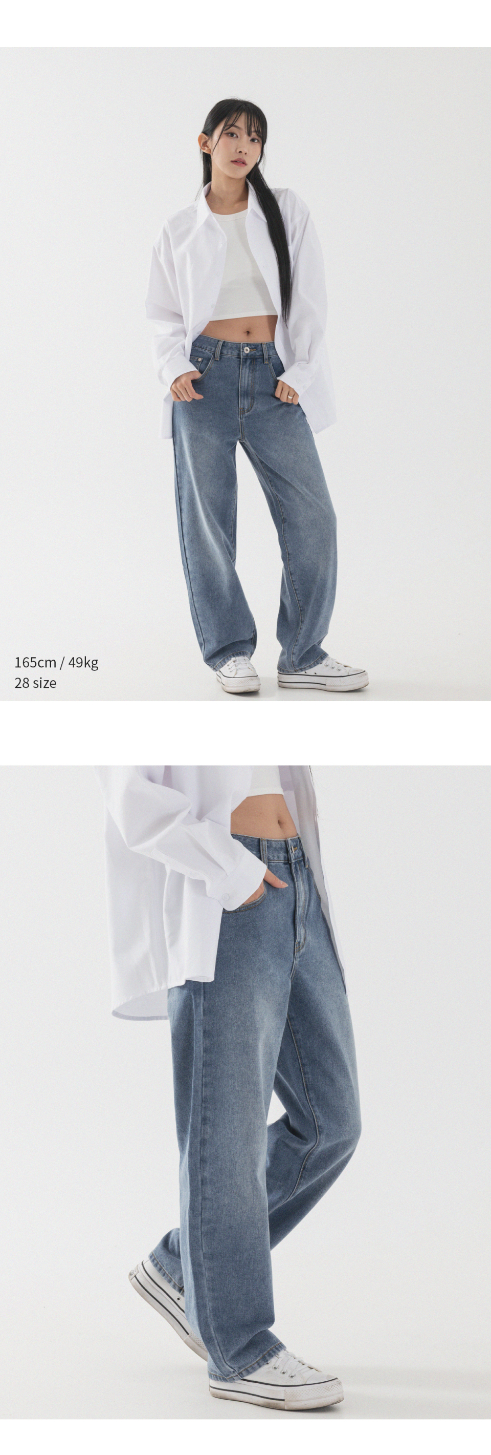내추럴 워싱 세미 와이드 데님 팬츠 [연청]