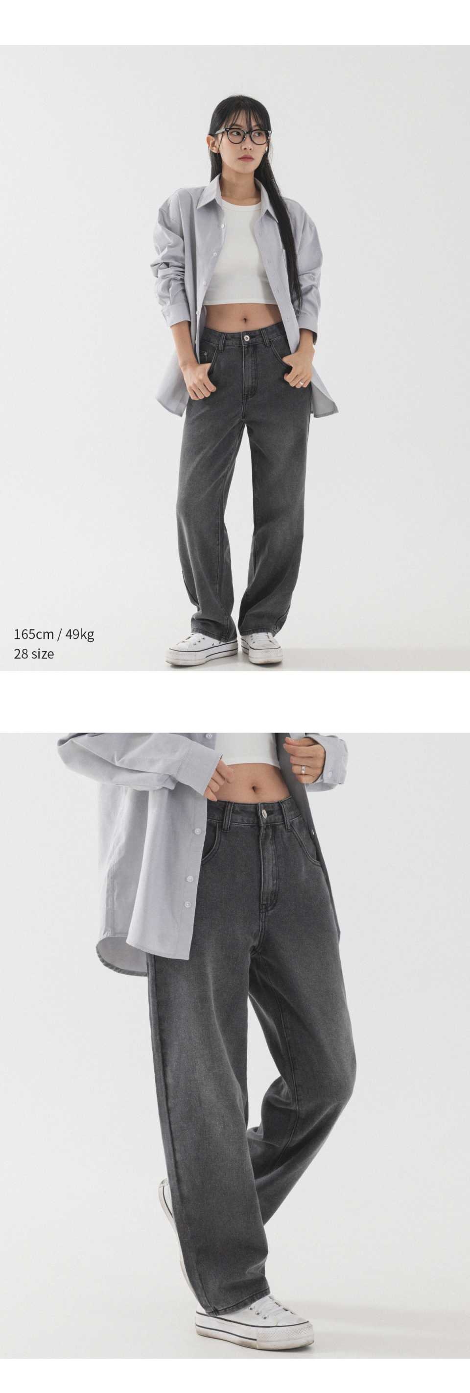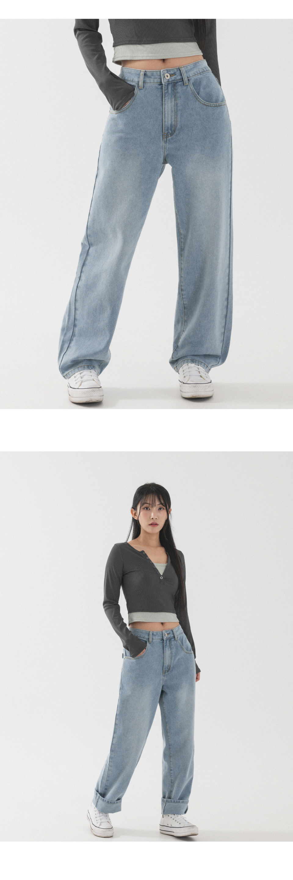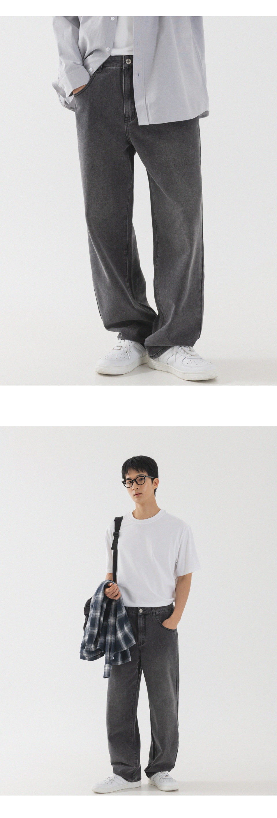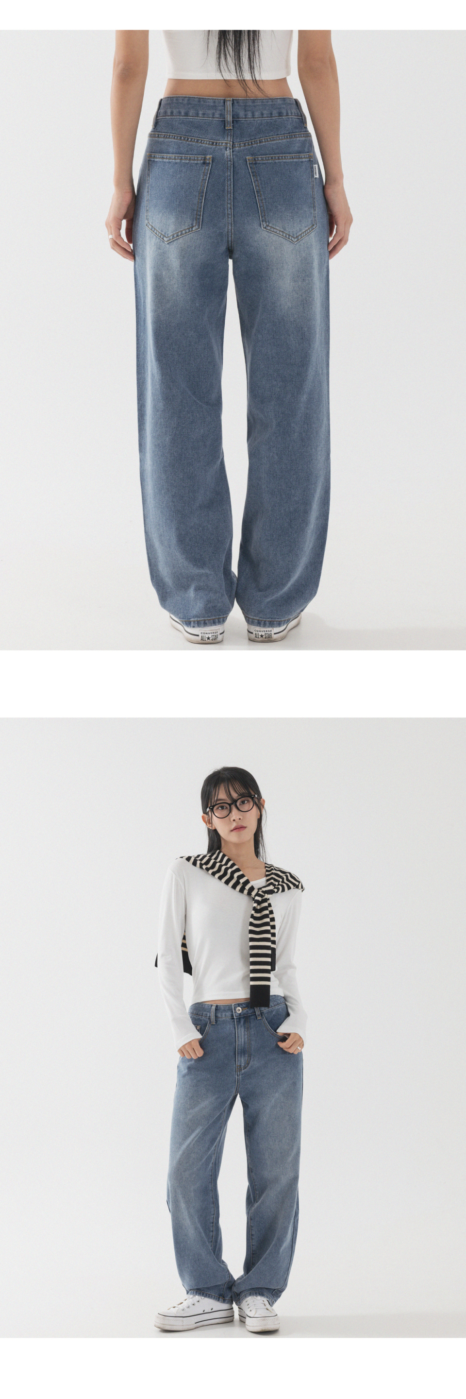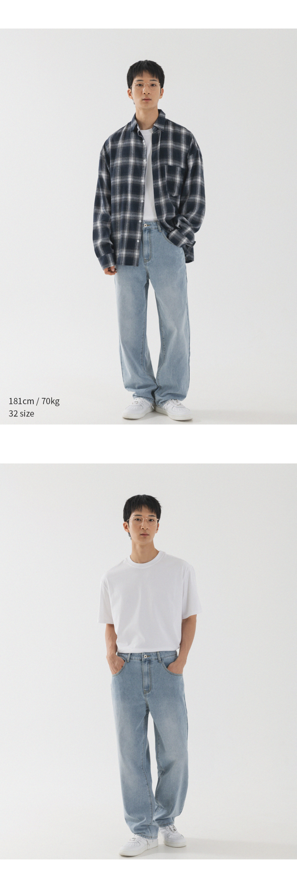 내추럴 워싱 세미 와이드 데님 팬츠 [연청]