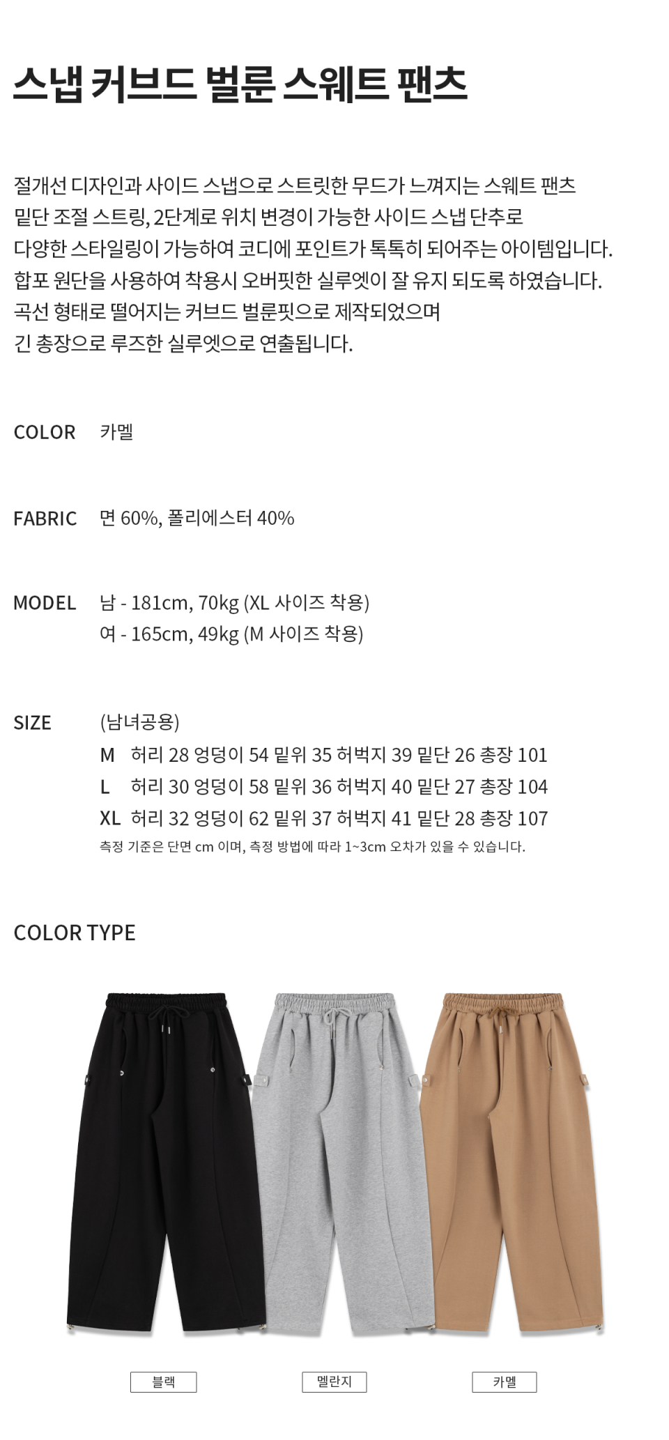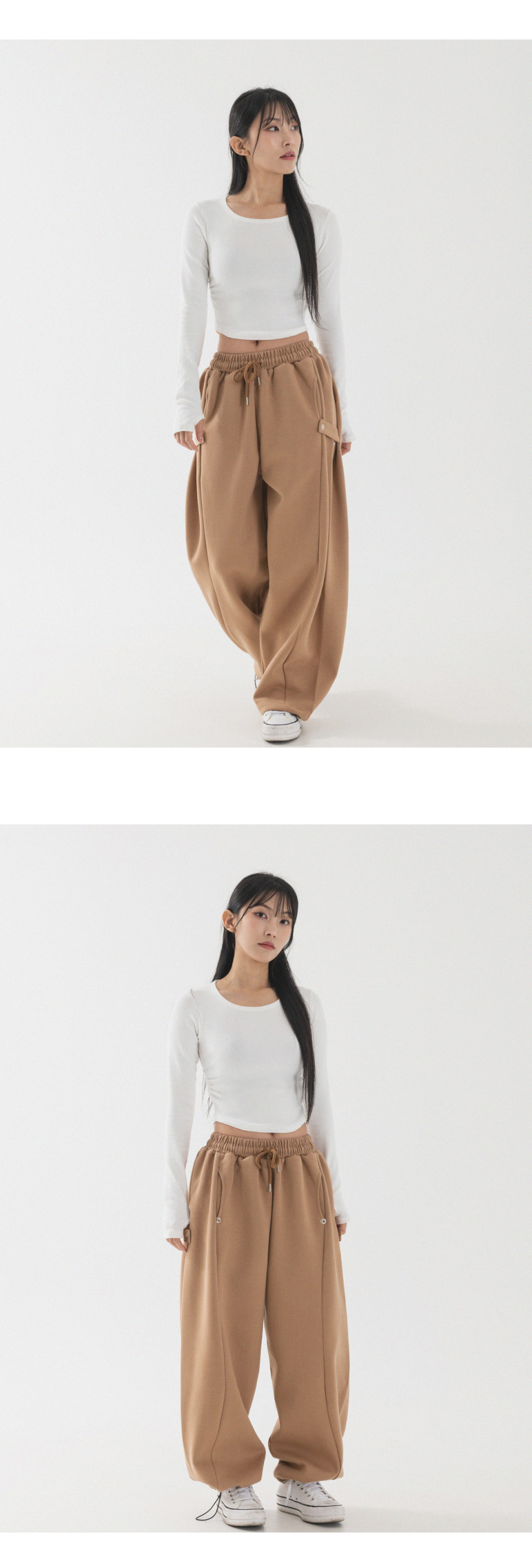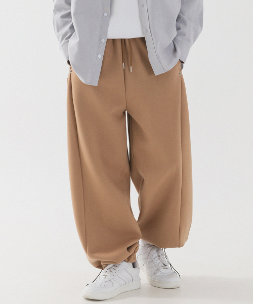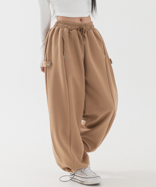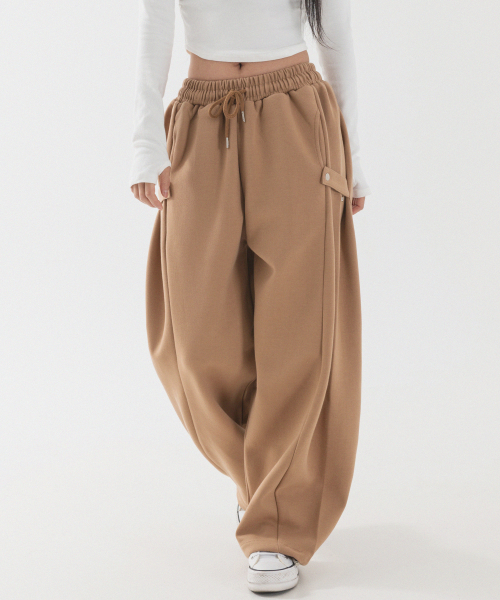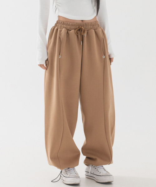 스냅 커브드 벌룬 스웨트 팬츠 (카멜)