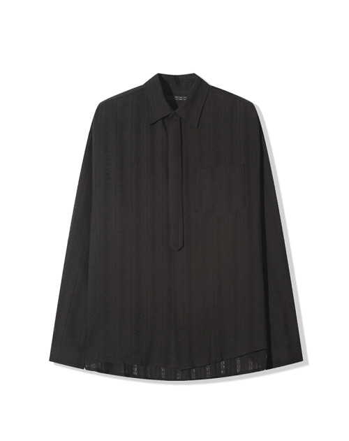 타이 스트라이프 히든버튼 셔츠 _ 블랙 (타이 탈부착 가능)