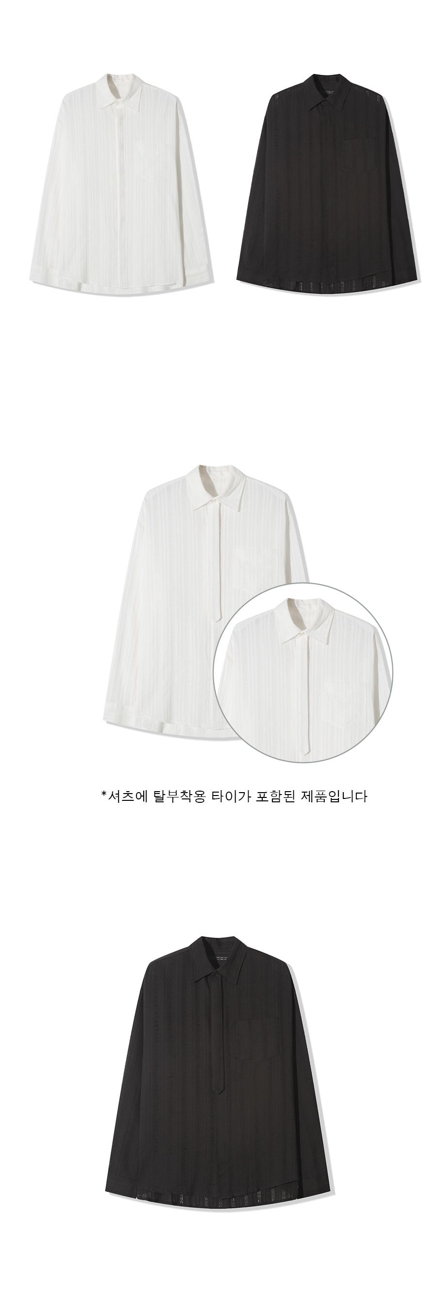 무지 베이직 오버핏 타이 셔츠 _ 블랙 (타이 탈부착 가능)