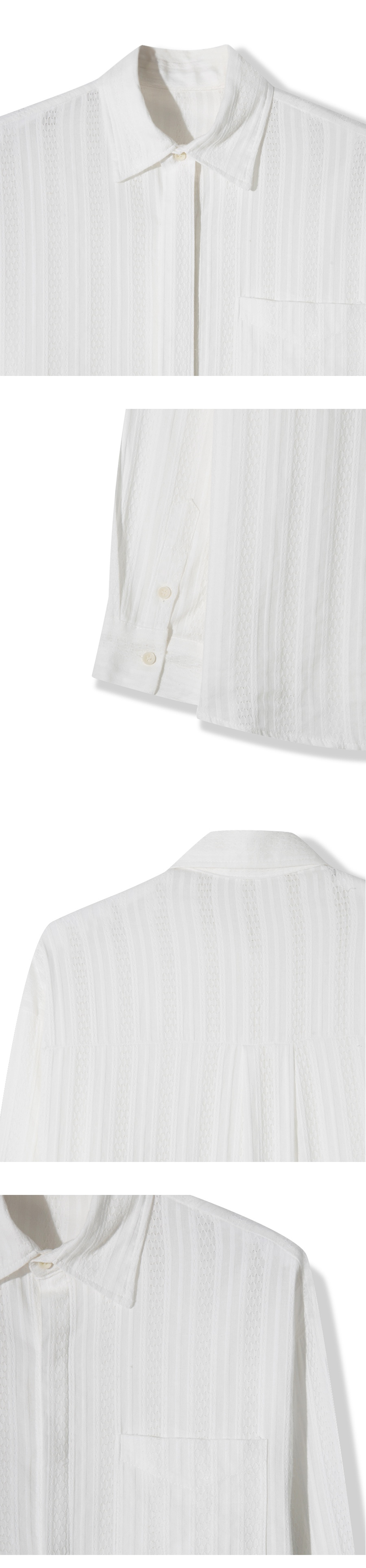 레이스 펀칭 니트 셔츠 _ 화이트 (타이 탈부착 가능)