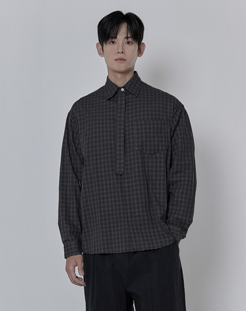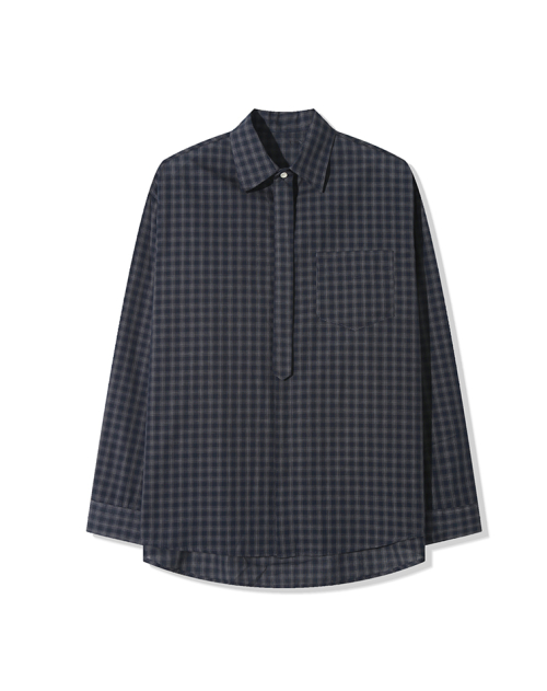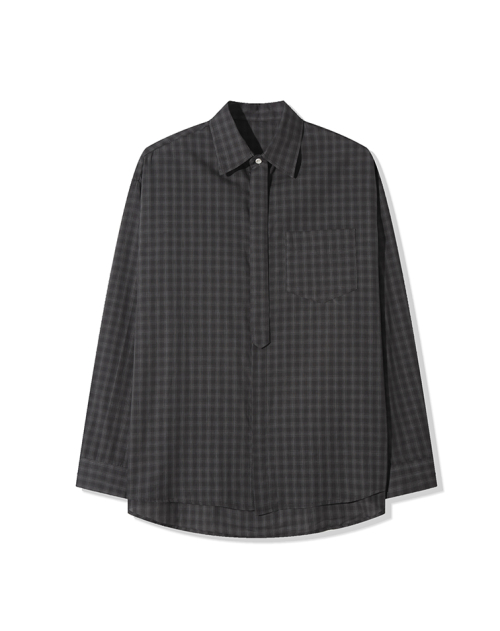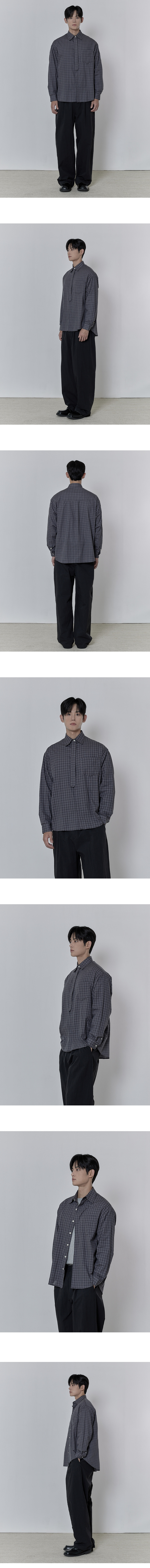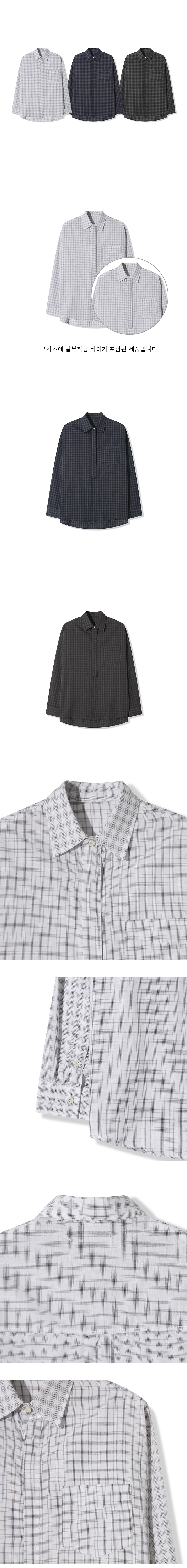 그리드 타이 루즈핏 히든셔츠 _ 블랙 (타이 탈부착 가능)