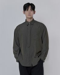무지 베이직 오버핏 타이 셔츠 _ 카키 (타이 탈부착 가능)