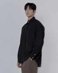 무지 베이직 오버핏 타이 셔츠 _ 블랙 (타이 탈부착 가능)