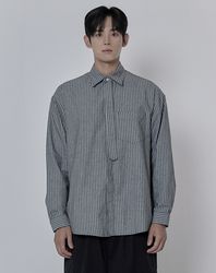 타이 스트라이프 히든버튼 셔츠 _ 블랙 (타이 탈부착 가능)