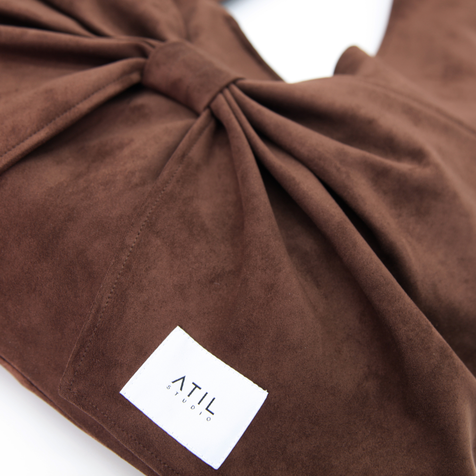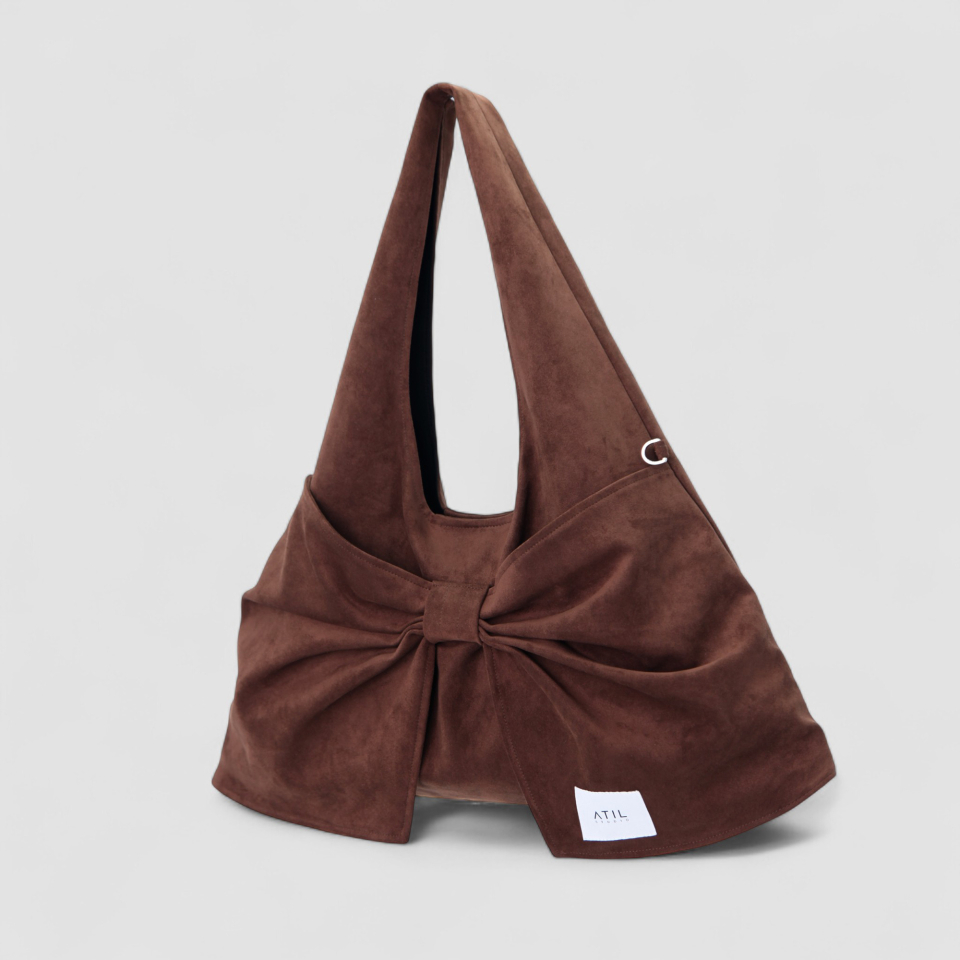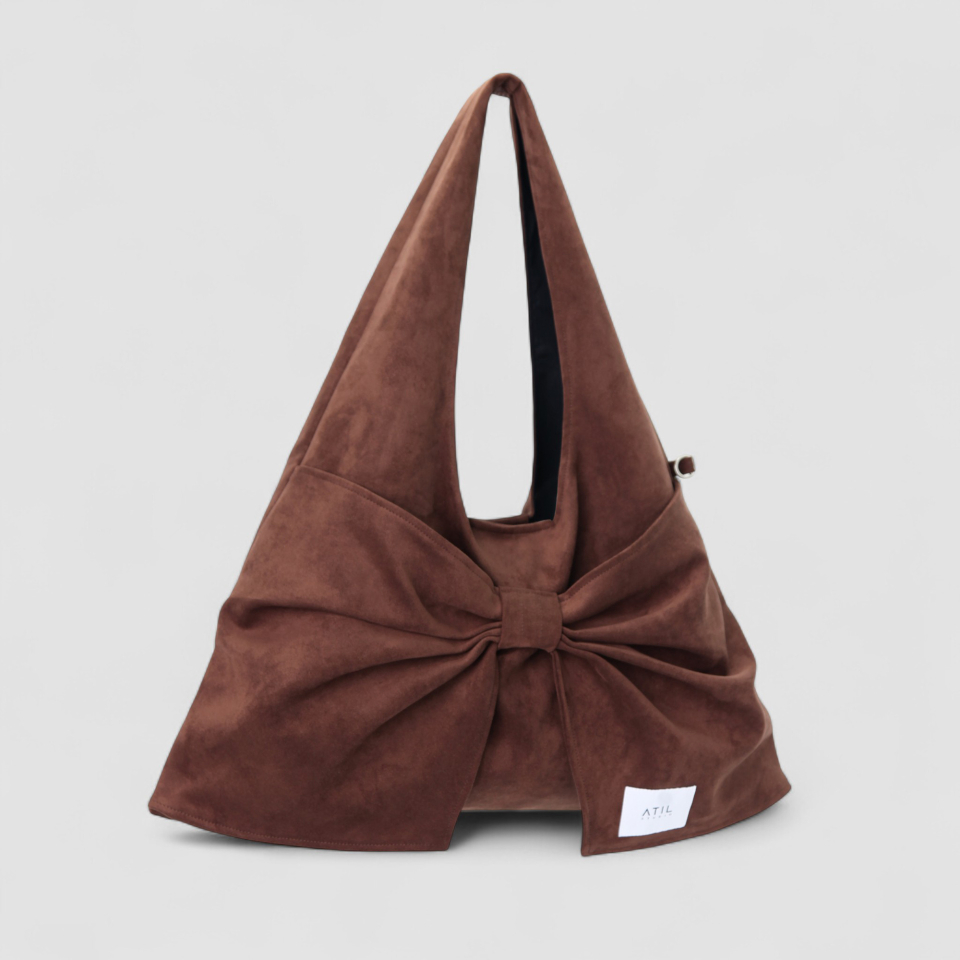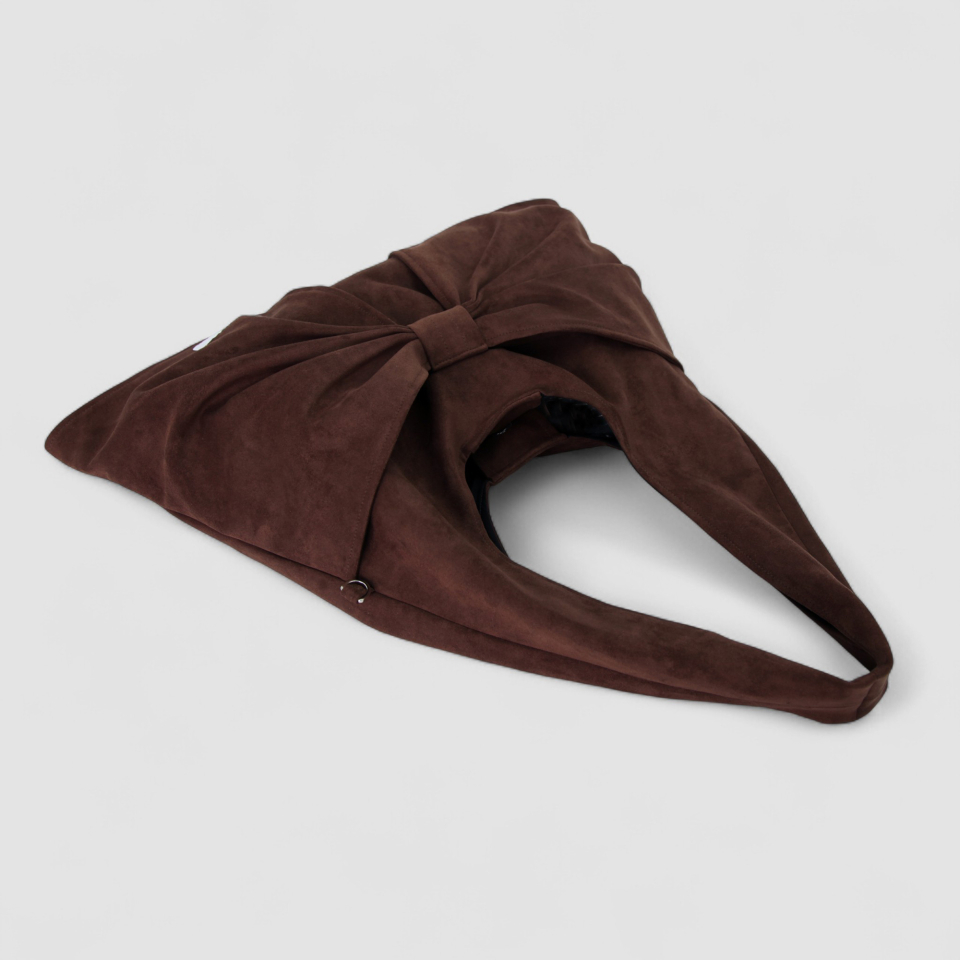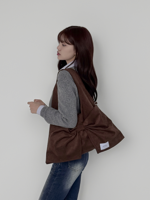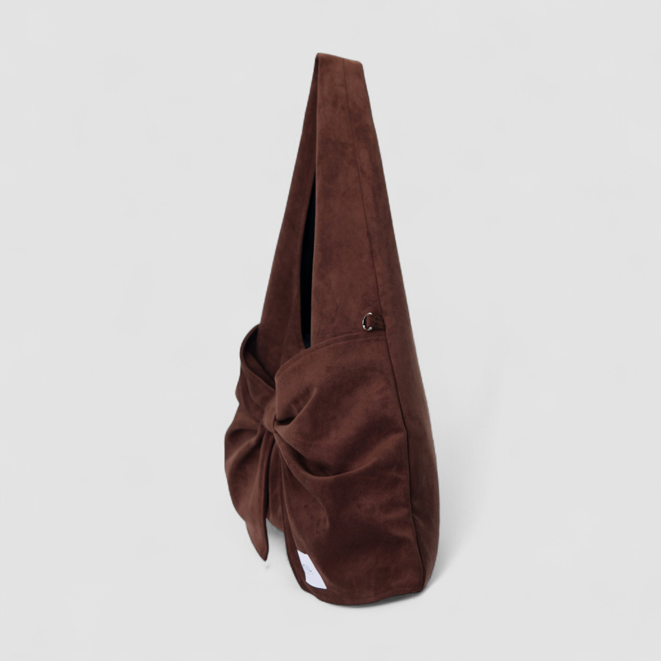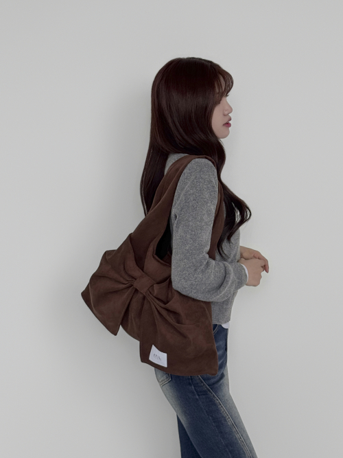 벨루어 스웨이드 듀이 리본 숄더백_모카