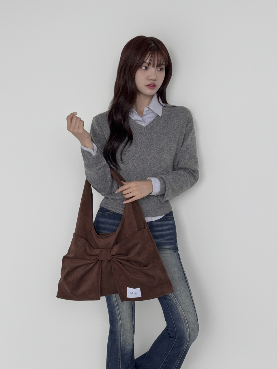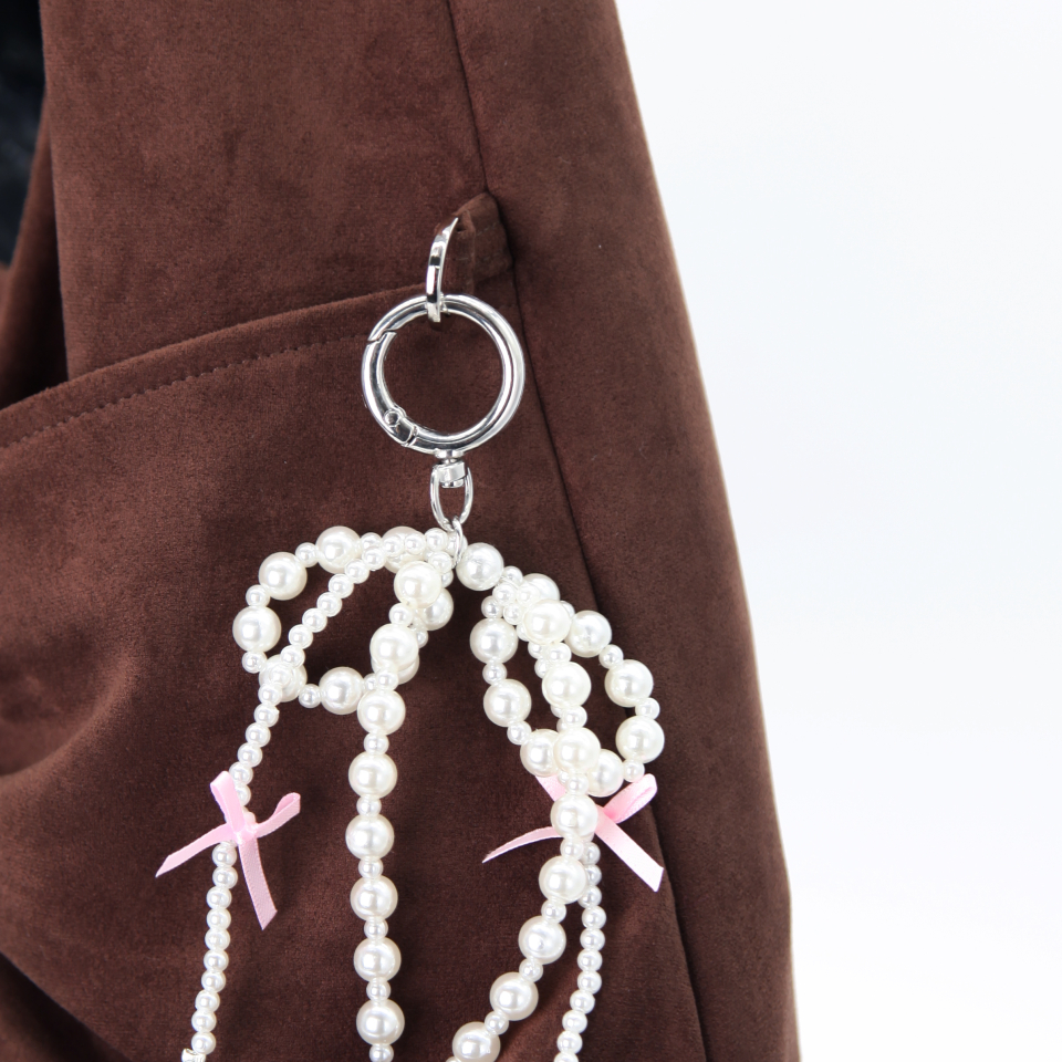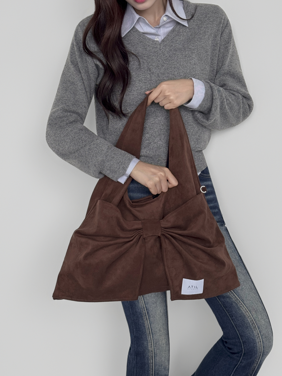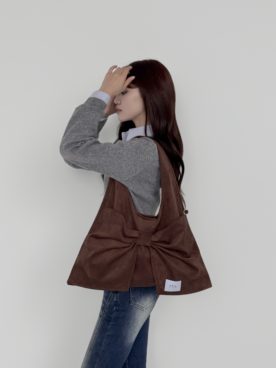 벨루어 스웨이드 듀이 리본 숄더백_모카