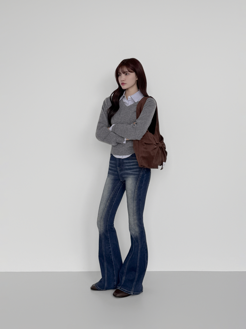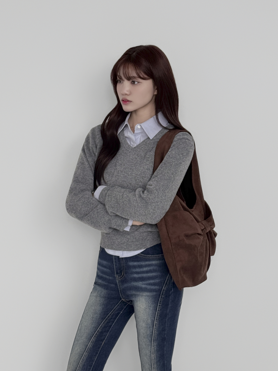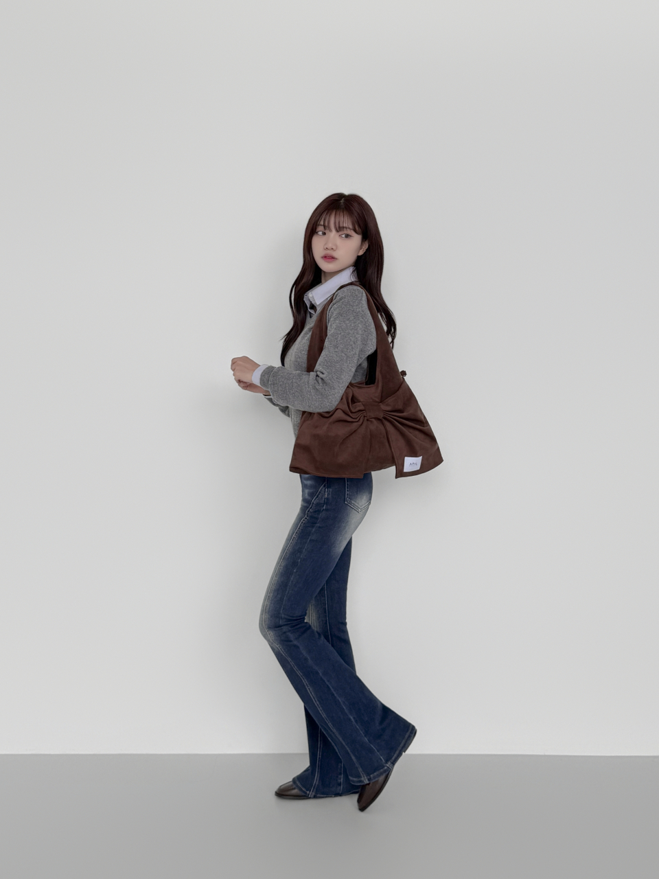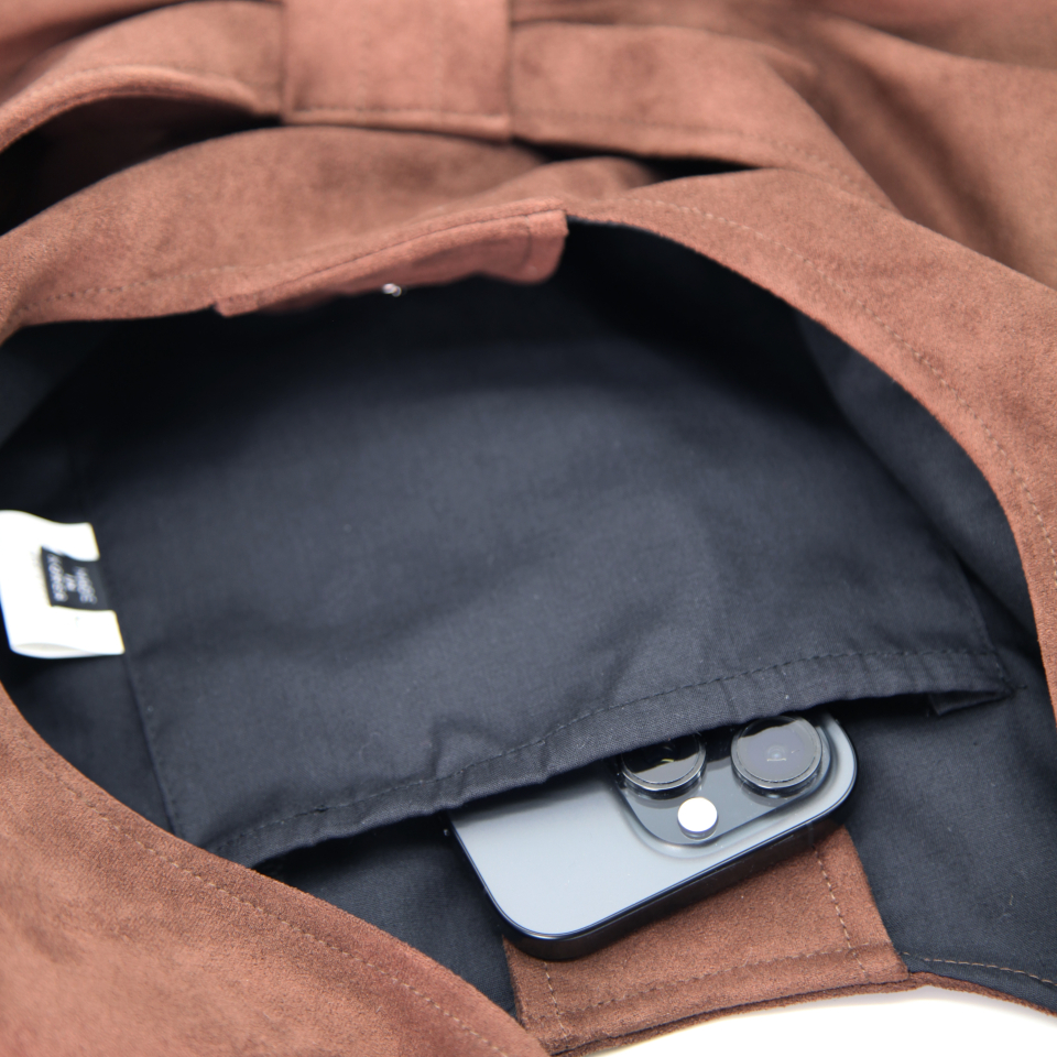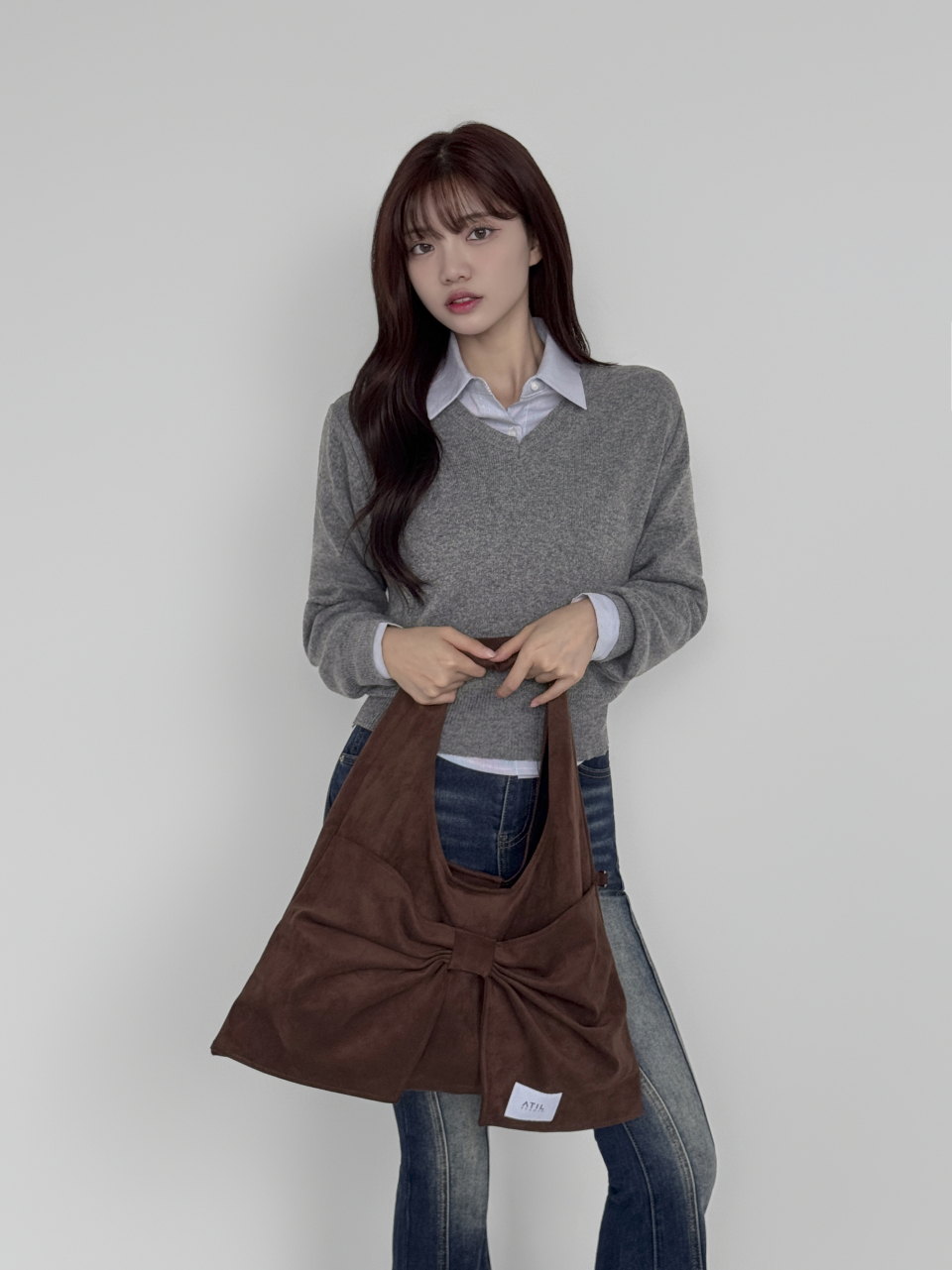 벨루어 스웨이드 듀이 리본 숄더백_모카