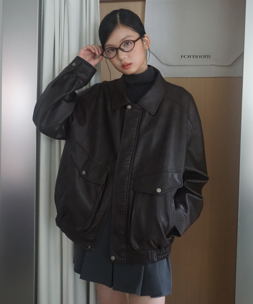 페이크 레더 포켓 블루종 점퍼 [ASH KHAKI] / GF1LJK502