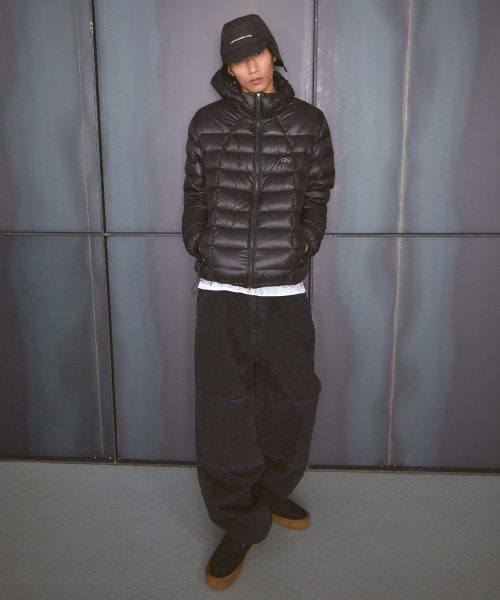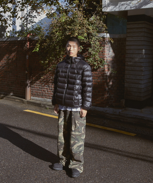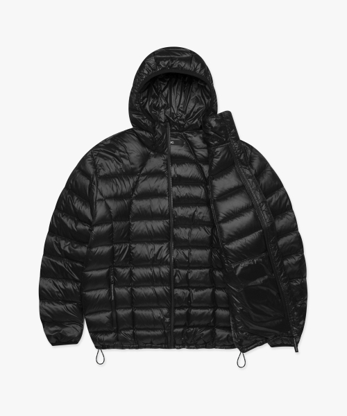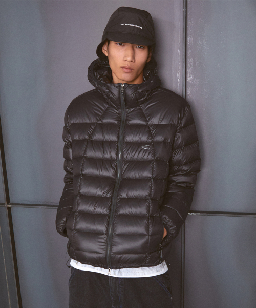 OVAL GLOBE LIGHT WEIGHT HOODED DOWN JACKET black