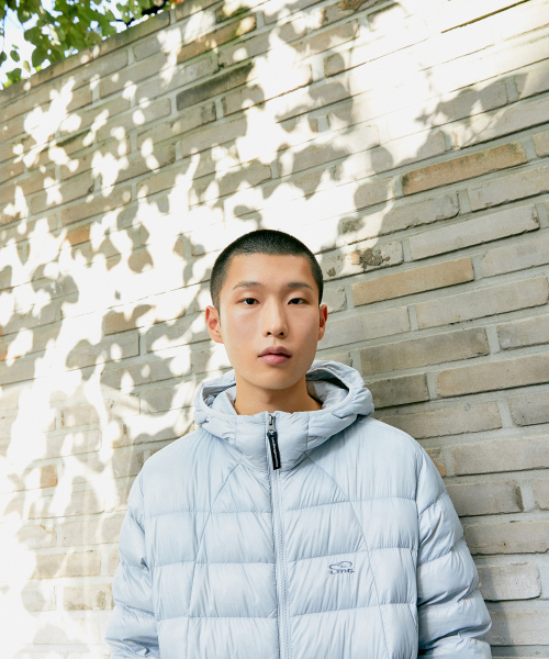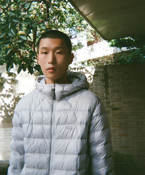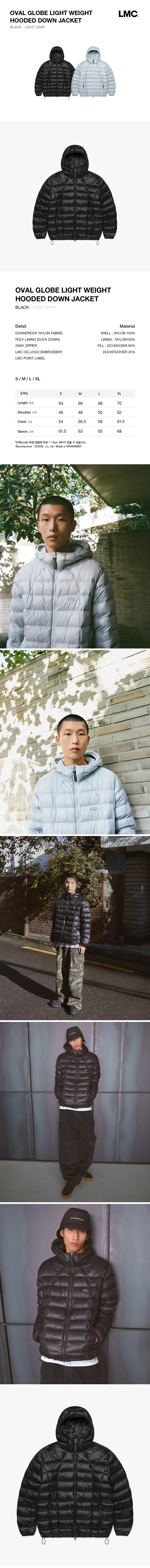 OVAL GLOBE LIGHT WEIGHT HOODED DOWN JACKET light gray