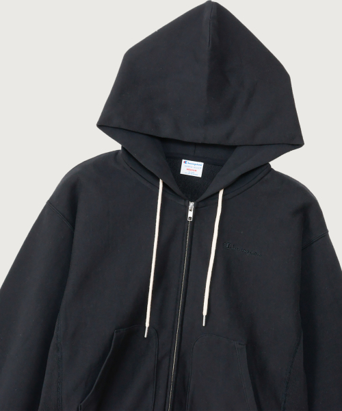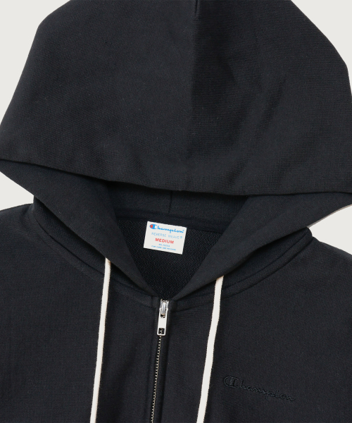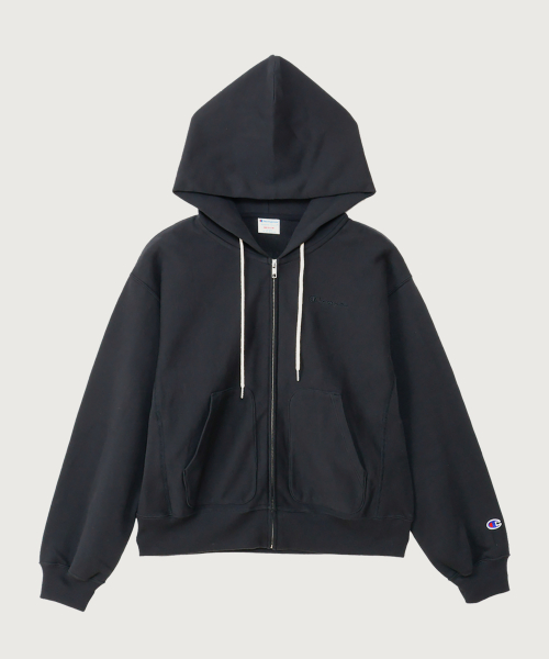 여성 리버스위브 스몰 로고 루즈핏 후드 집업 Off Black