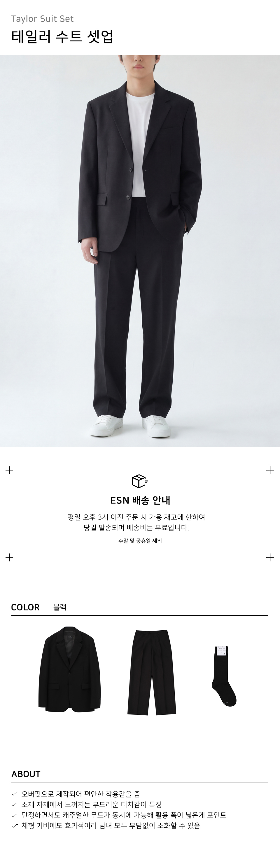 W11 세미 오버 핏 셋업 수트_BLACK