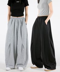 맞춤 2기장 2WAY 투핀턱 밑단조절 스트링 밴딩 와이드 트레이닝 스웻 팬츠 4COLOR (숏/ 롱 2TYPE 길이)