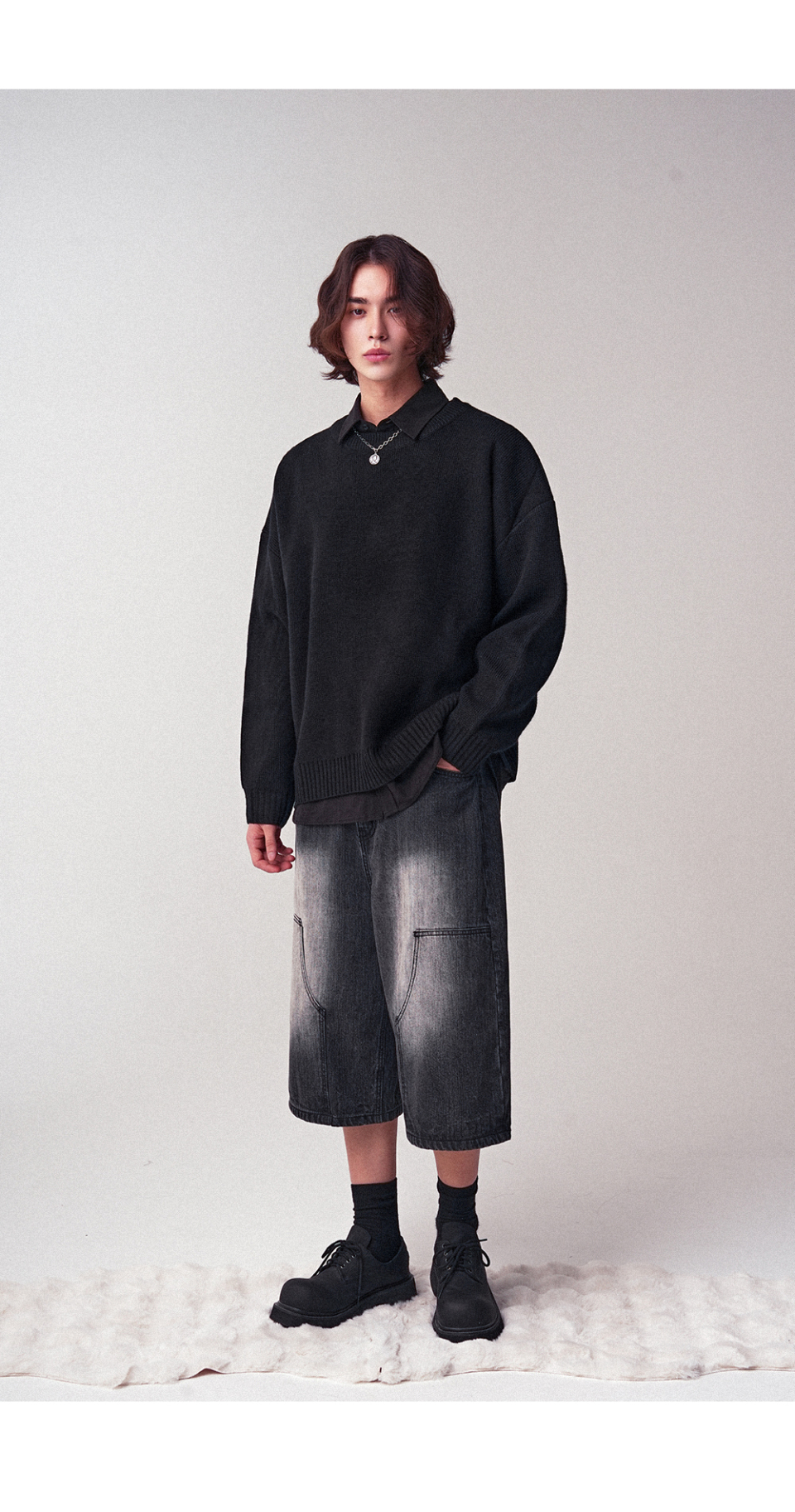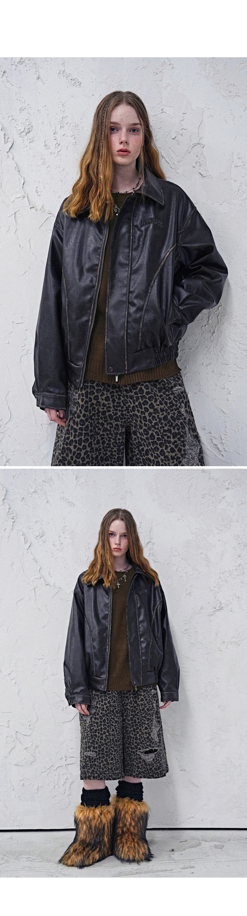비건 스웨이드 오버핏 미니멀 인시전 스트레이트 집업 자켓 [블랙]