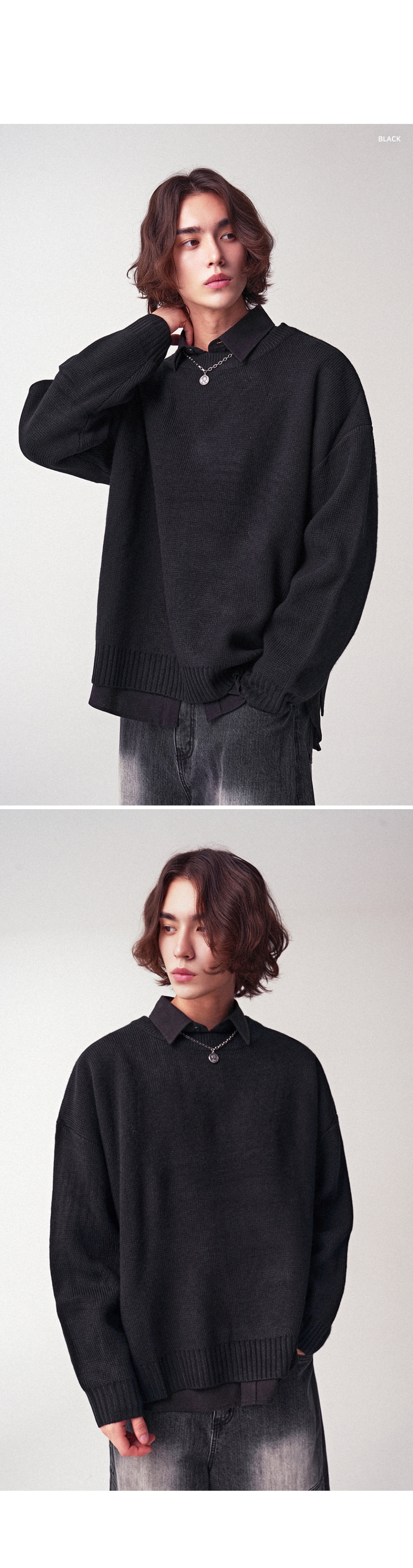 VLAD 피그먼트 슬래쉬 롱슬리브 티셔츠_차콜