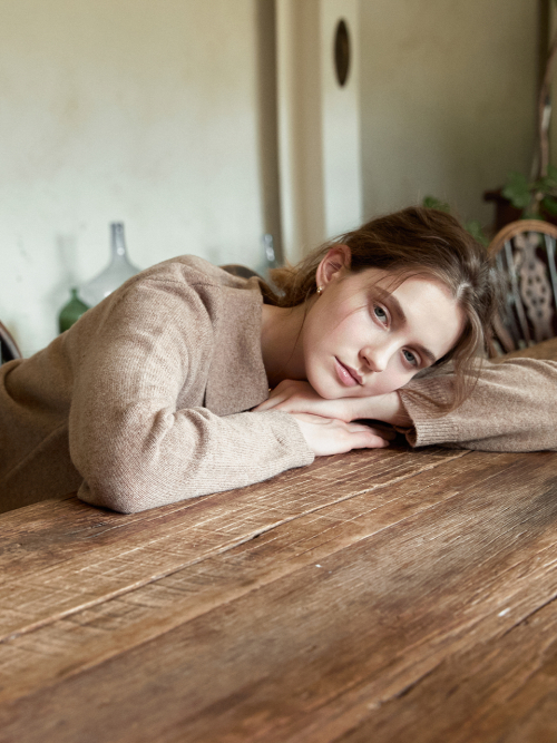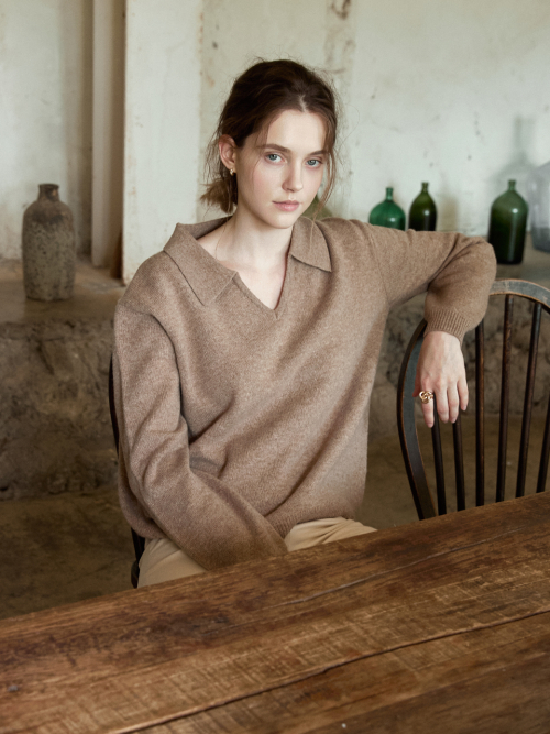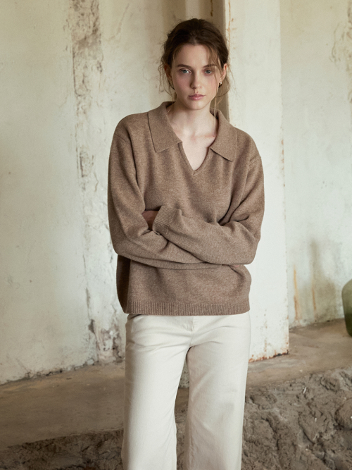 SERIN v-neck collar wool knit_MOCHA