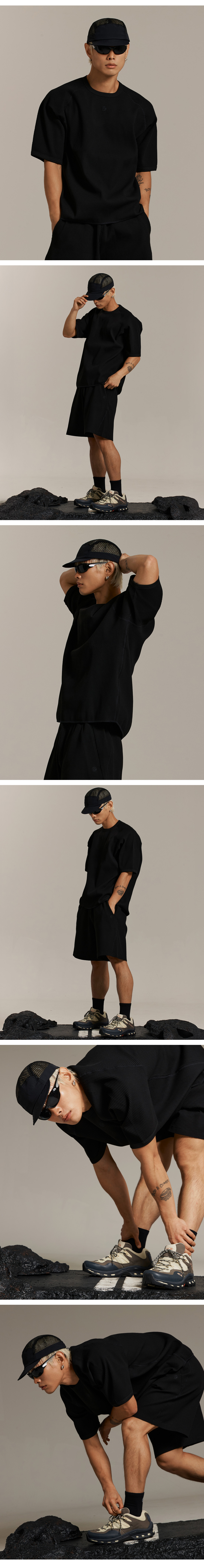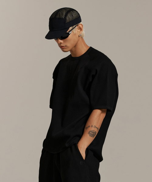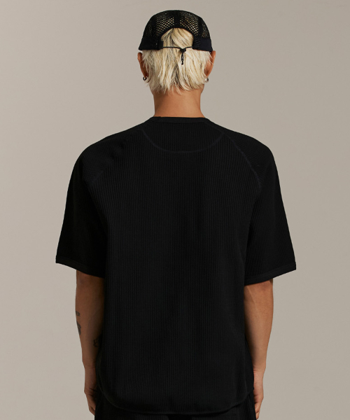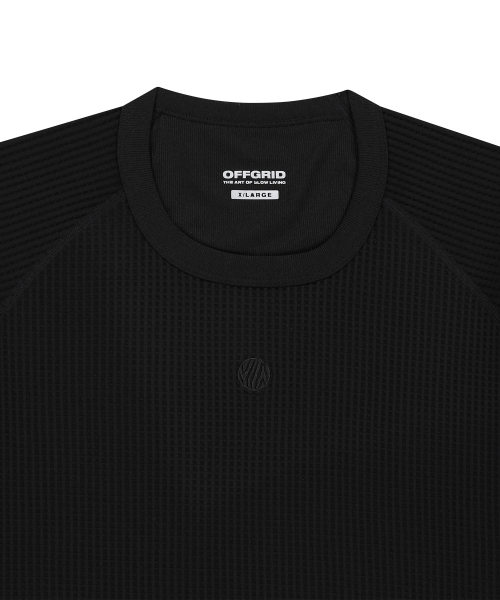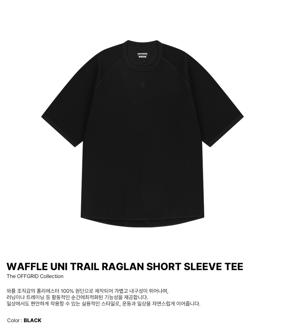 와플 유니 트레일 래글런 숏 슬리브 티-블랙