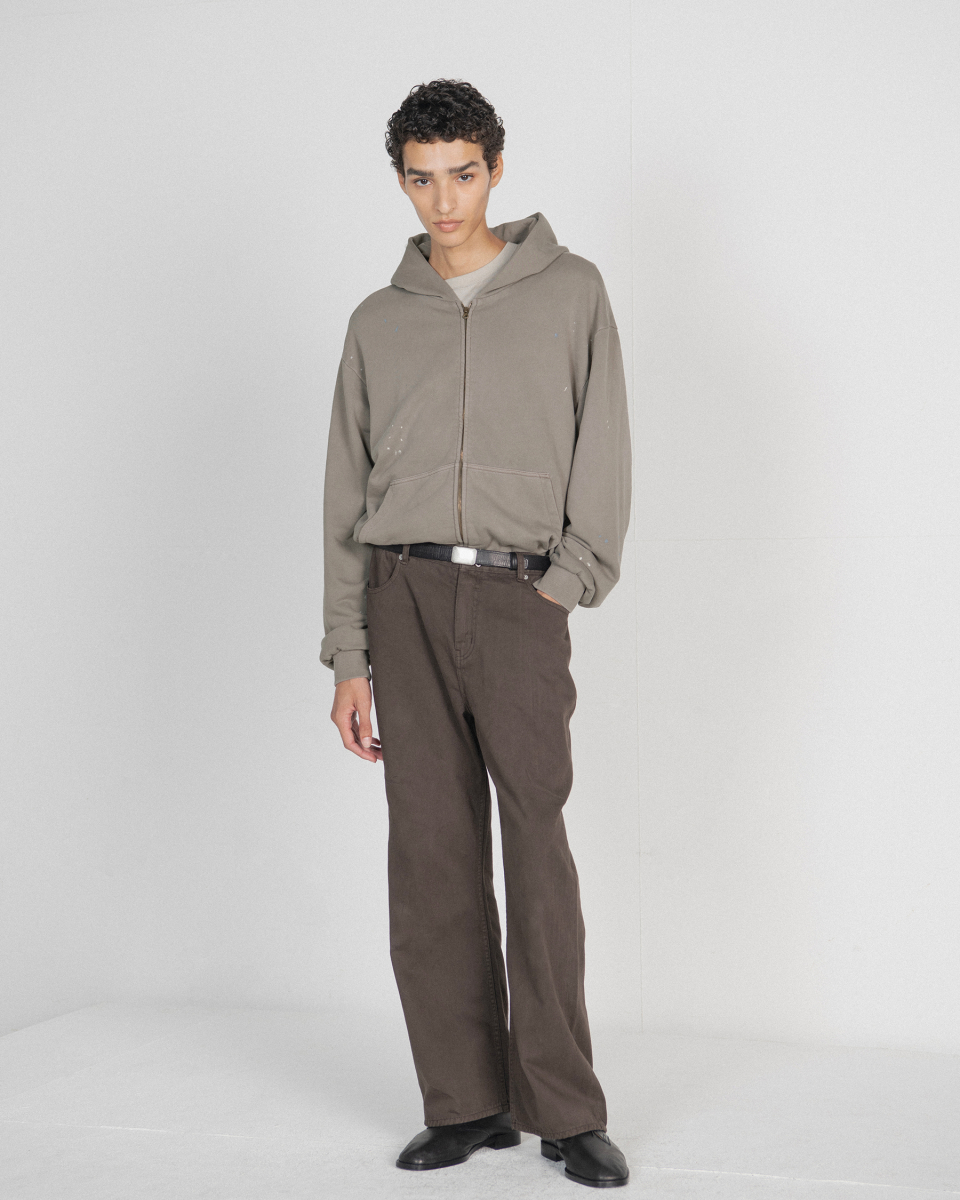 여기에 가먼트 다잉(Garment Dyeing) 기법을 적용해 일반 워싱 데님과는 차별화되는 깊이감 있는 컬러와 빈티지한 무드를 담아냈습니다.