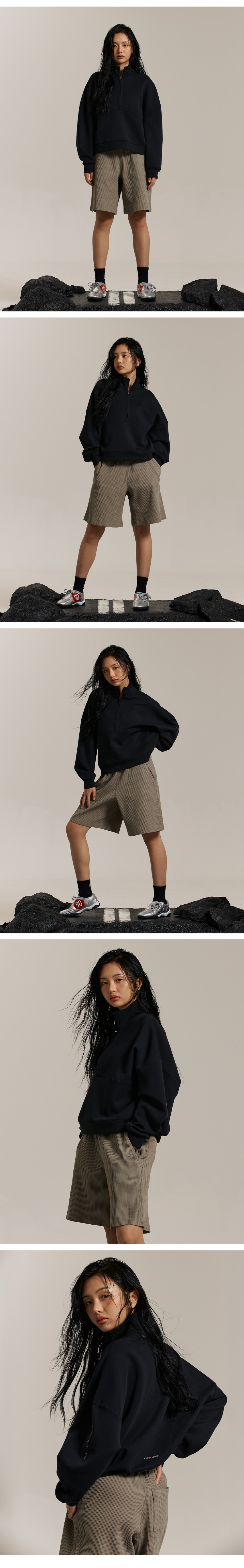스트럭쳐 코튼 워싱 버뮤다 팬츠-블랙