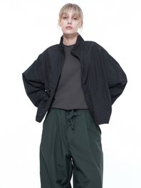 Searsucker Crop Windbreaker Jumper - Black