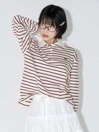 스트라이프 카라 티셔츠 (아이보리)