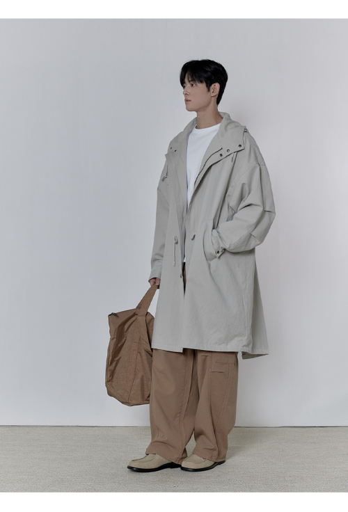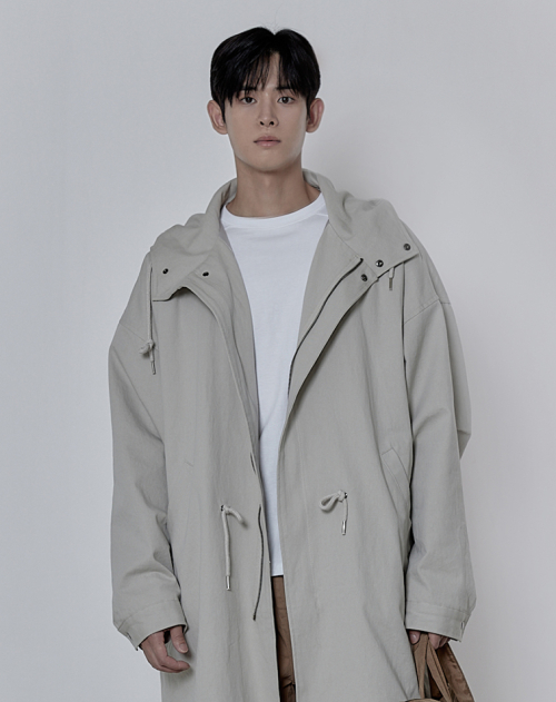 사일런트 롱 후드 쓰리버튼 야상 _ 라이트 그레이