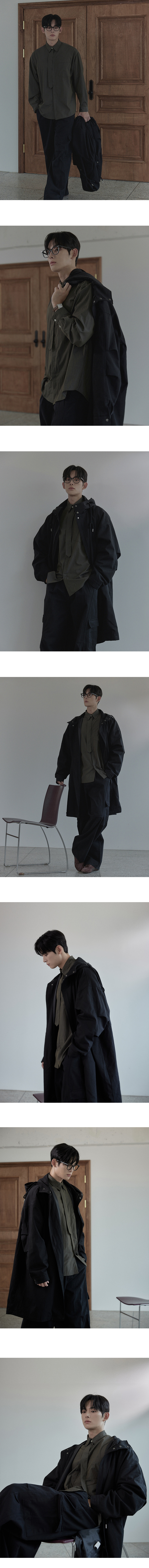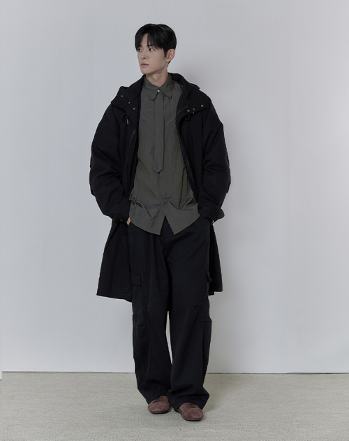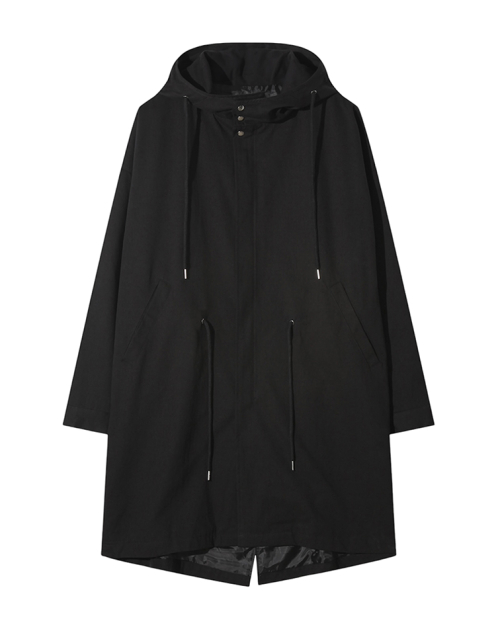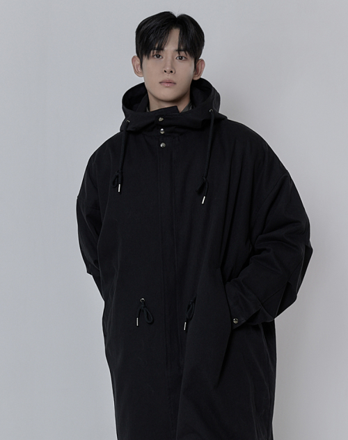 사일런트 롱 후드 쓰리버튼 야상 _ 블랙