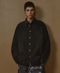 헤비웨이트 오버사이즈 데님 셔츠 [워시드 블랙]