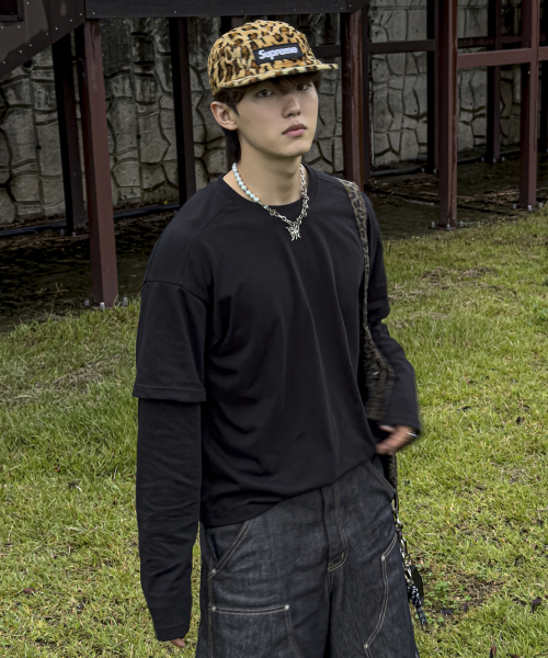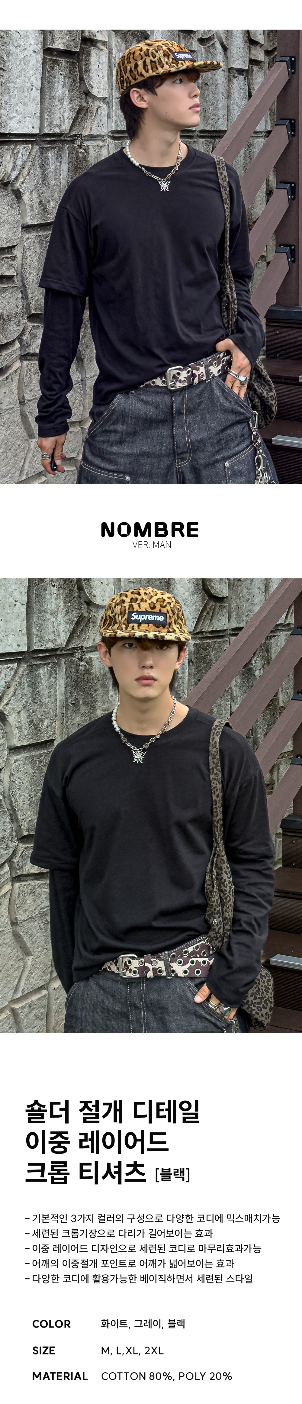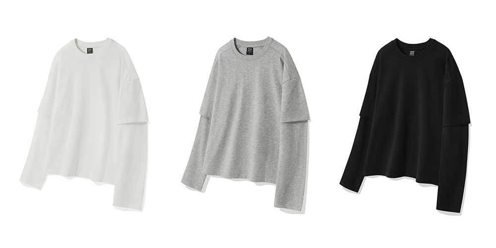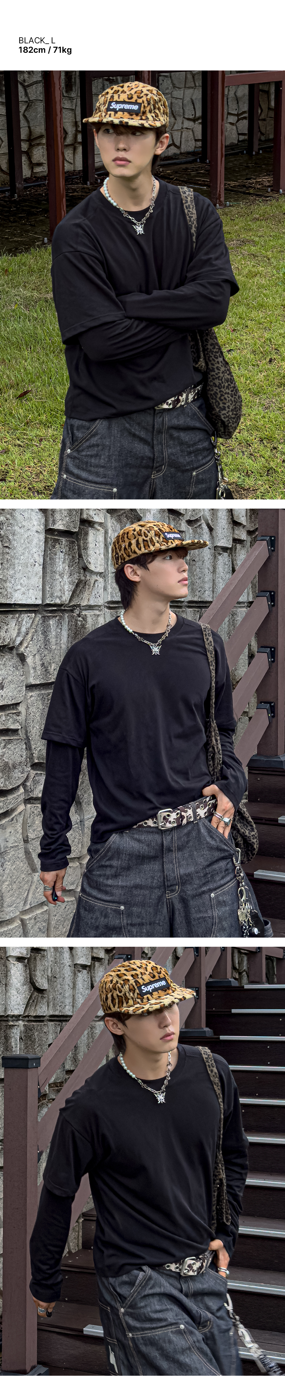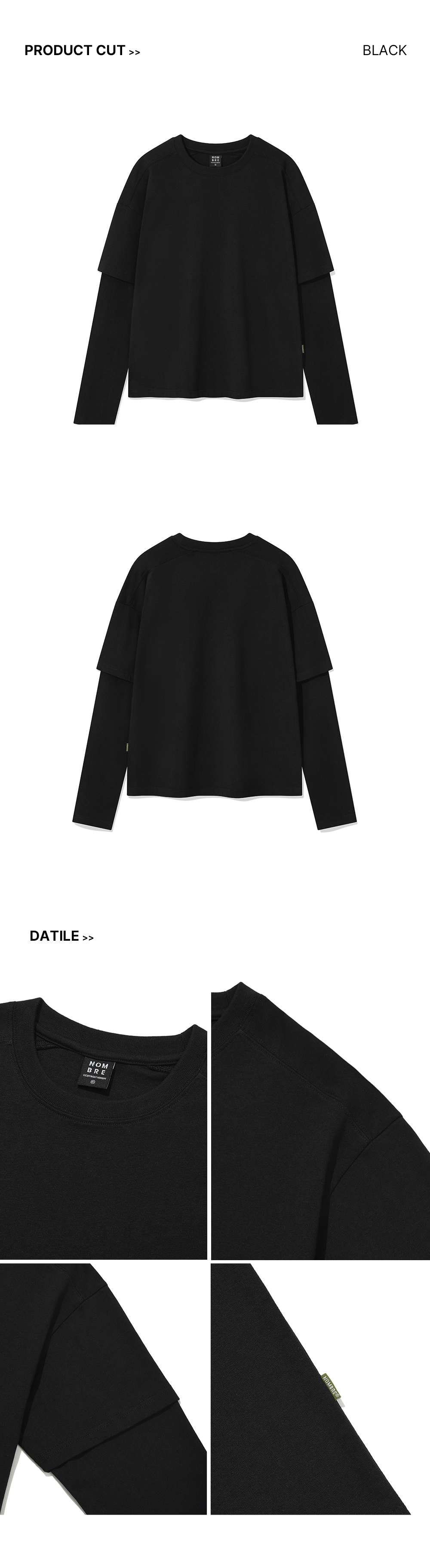 이중 레이어드 크롭 긴팔 티셔츠[블랙]
