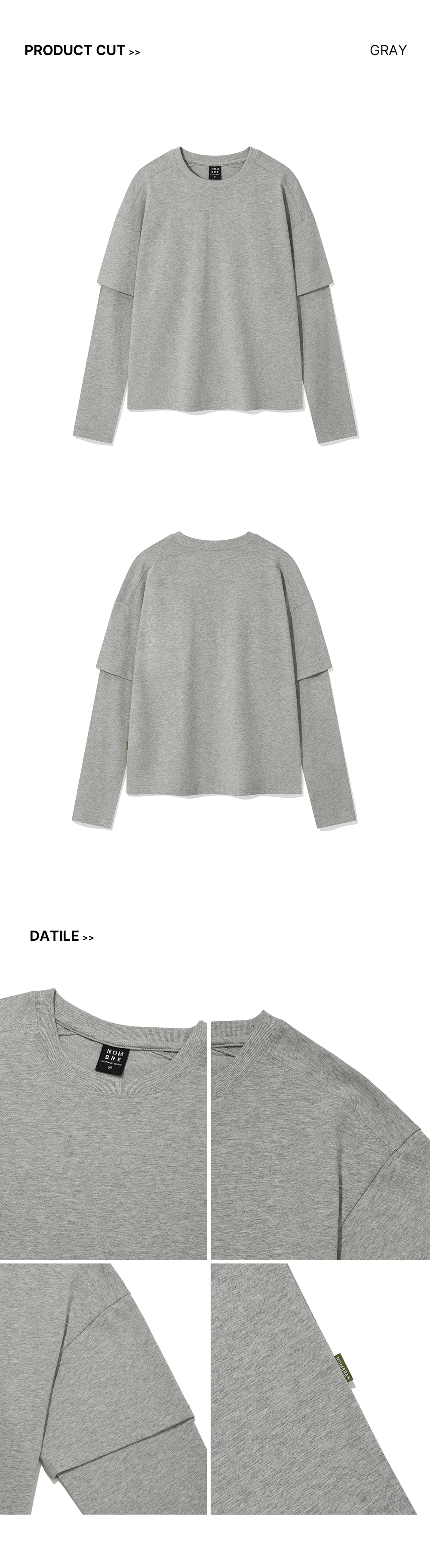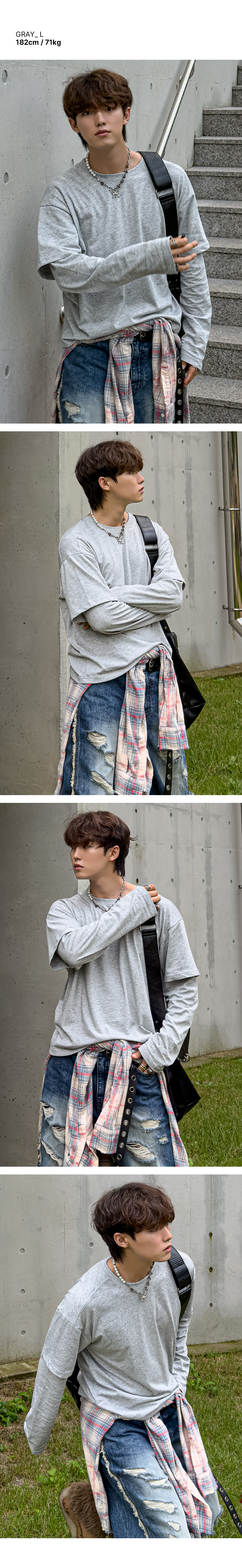 이중 레이어드 크롭 긴팔 티셔츠[그레이]
