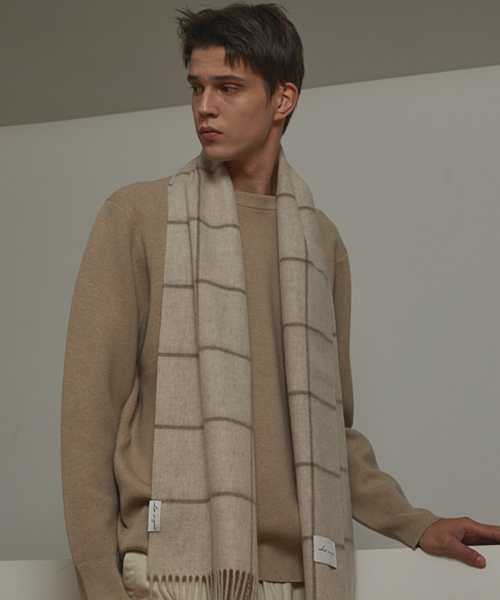 [기프트박스]_베를린 패턴 버진울 머플러_오트밀_남녀공용