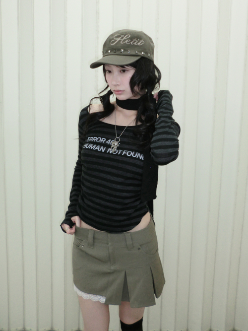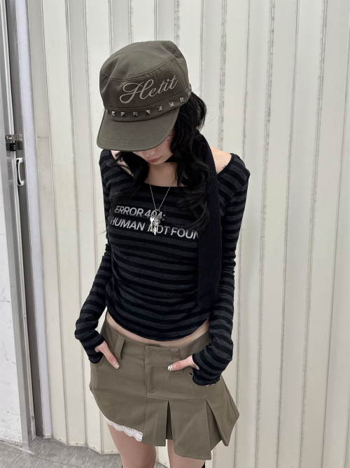 Y2K 스트라이프 헌팅 캡 (블랙)