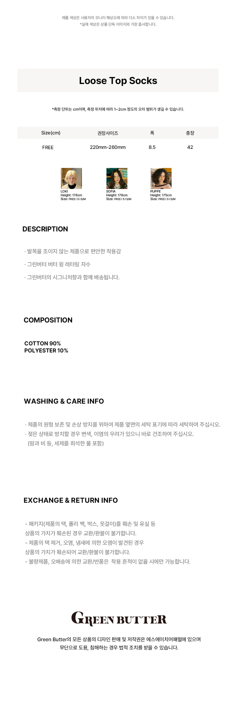그린버터(GREENBUTTER)는 이미 존재하는 듯 익숙한 단어의 조합이지만 실재하지 않습니다. 서로 다른 두 개의 의미가 만나 하나의 고유성이 되는 것처럼 장르의 조합을 통한 재해석은 익숙하지만 낯선, 그린버터만의 유니크한 룩을 의미합니다. 제품 본연의 가치에 충실하며 일상과 비일상을 아우르는 캐주얼 룩을 제안합니다.