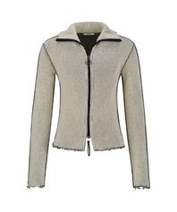 Destroyed Lip Knit Zip-Up_[Ivory]