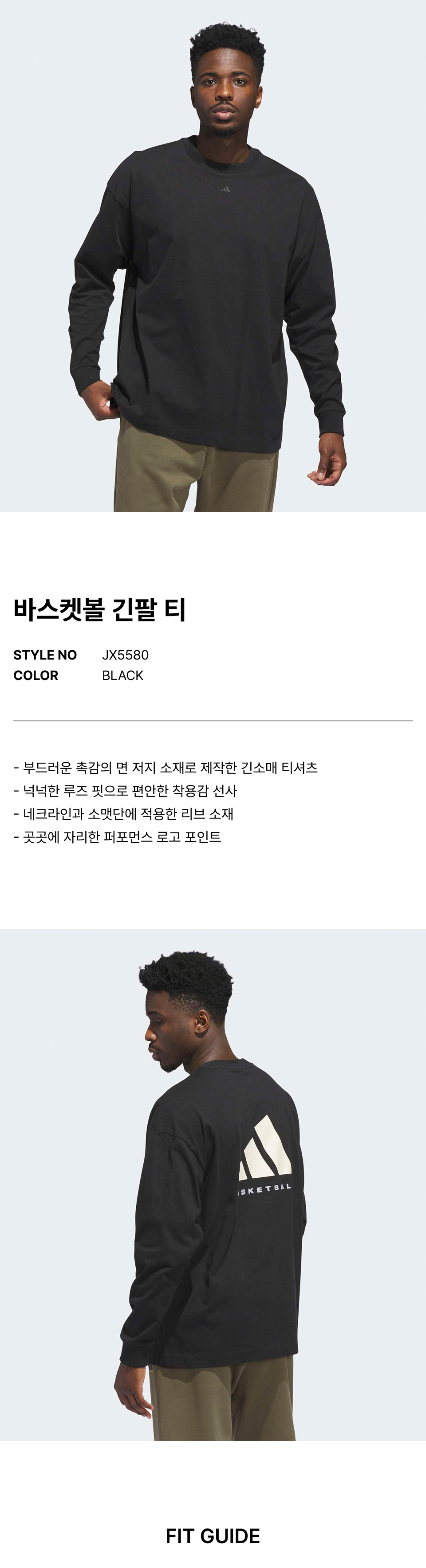 바스켓볼 긴팔 티 - 블랙 / JX5580