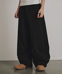 CURVED PINTUCK SWEAT PANTS (BLACK)