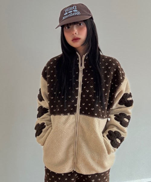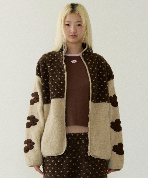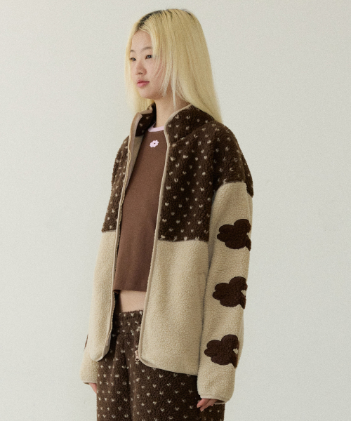 DOT BLOCK FLEECE JACKET brown