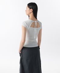 우먼즈 텐셀 슬림 타이 백 캡 슬리브 티셔츠 [화이트]