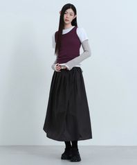 우먼즈 시어 나일론 플리츠 롱 스커트 [블랙]