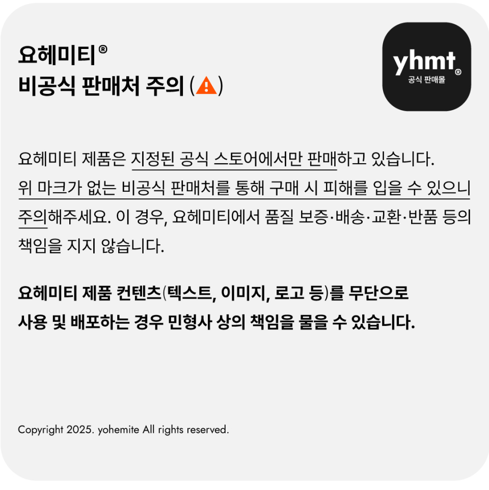 요헤미티(YOHEMITE)는 더 많은 사람들이 오랫동안 건강히 땀 흘리는 세상을 위해 노력합니다. 스포츠를 통해 가장 자연스러운 '나'로 거듭나는 우리를 위해 지속 가능하고 효과적이며 즐거운 경험을 제공하고자 합니다.