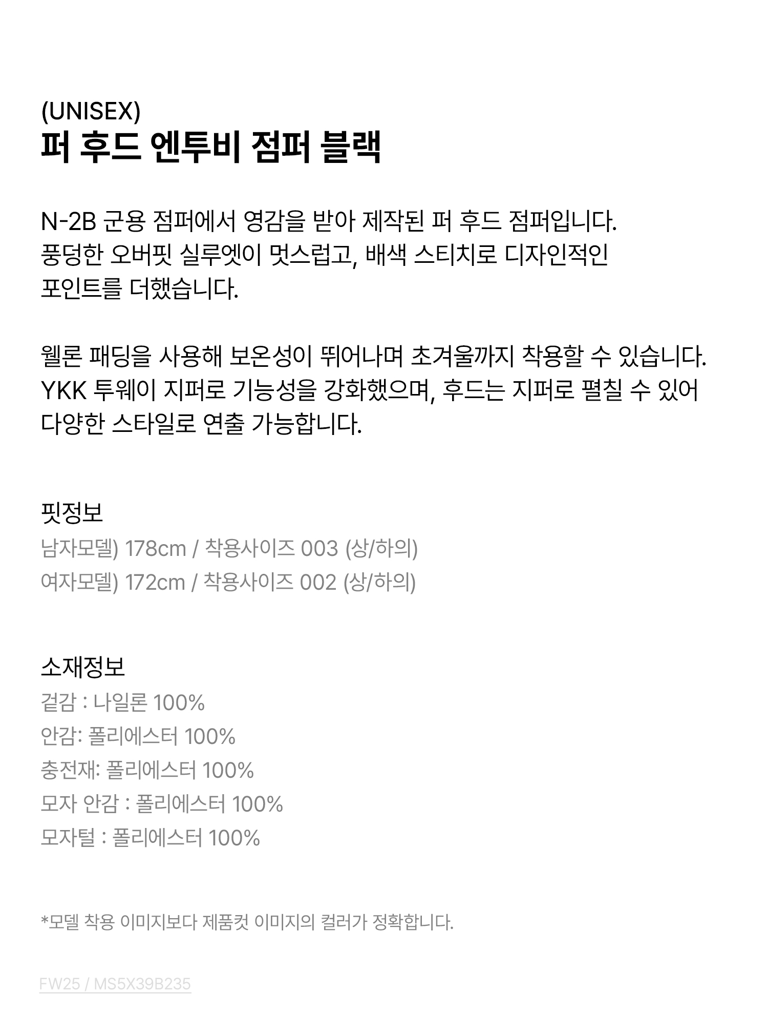 (UNISEX) 퍼 후드 엔투비 점퍼 블랙