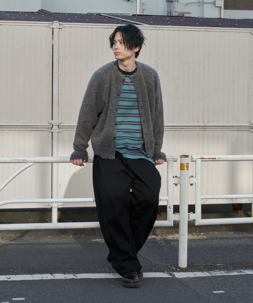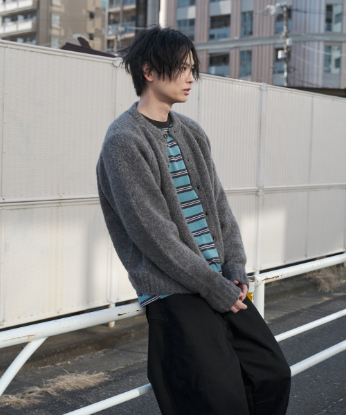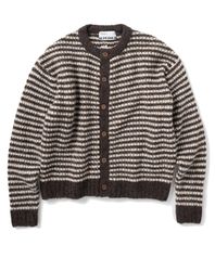 스트라이프 오버핏 크롭 가디건 - 브라운