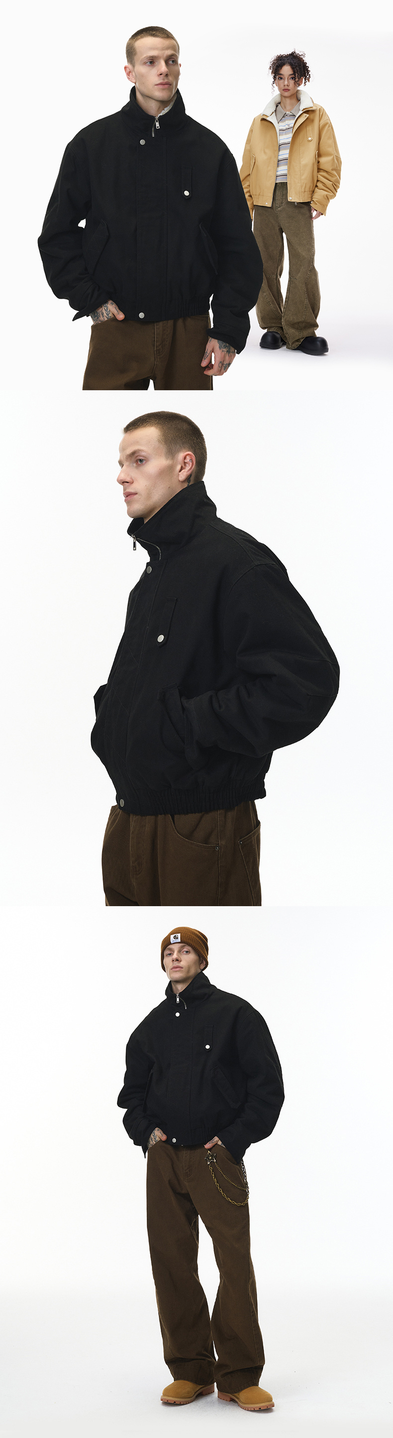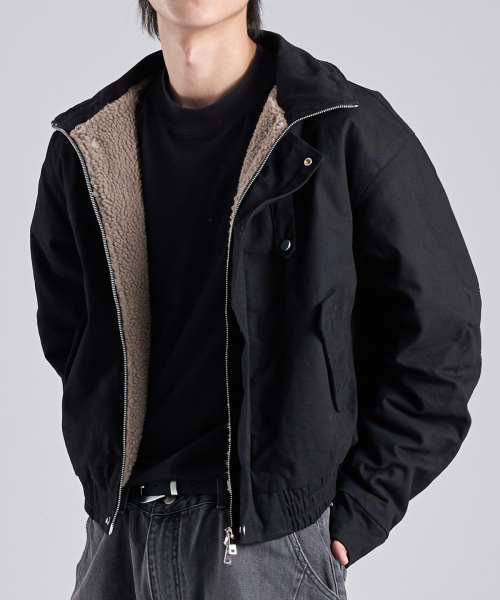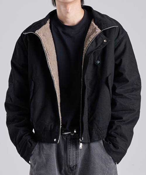 크롭 헤비 보아 투웨이 워크 자켓 (블랙)