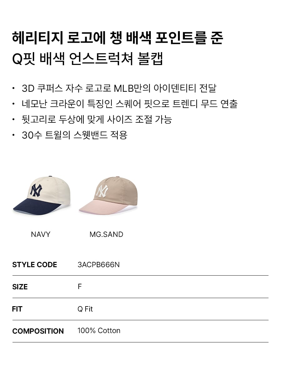 Q핏 배색 언스트럭쳐 볼캡 NY (Navy)