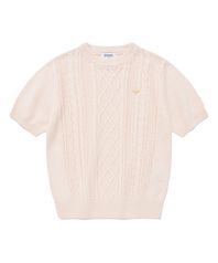 우먼 케이블 라운드넥 하프 니트 Pink