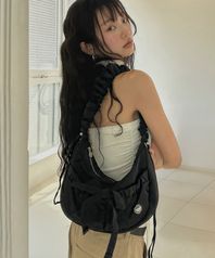 클로버하트 셔링 미디움 나일론 호보백 Black
